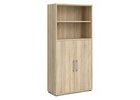 Dulap înalt cu 5 rafturi și sertare, mâner metalic, combină spații deschise și uși batante pentru...