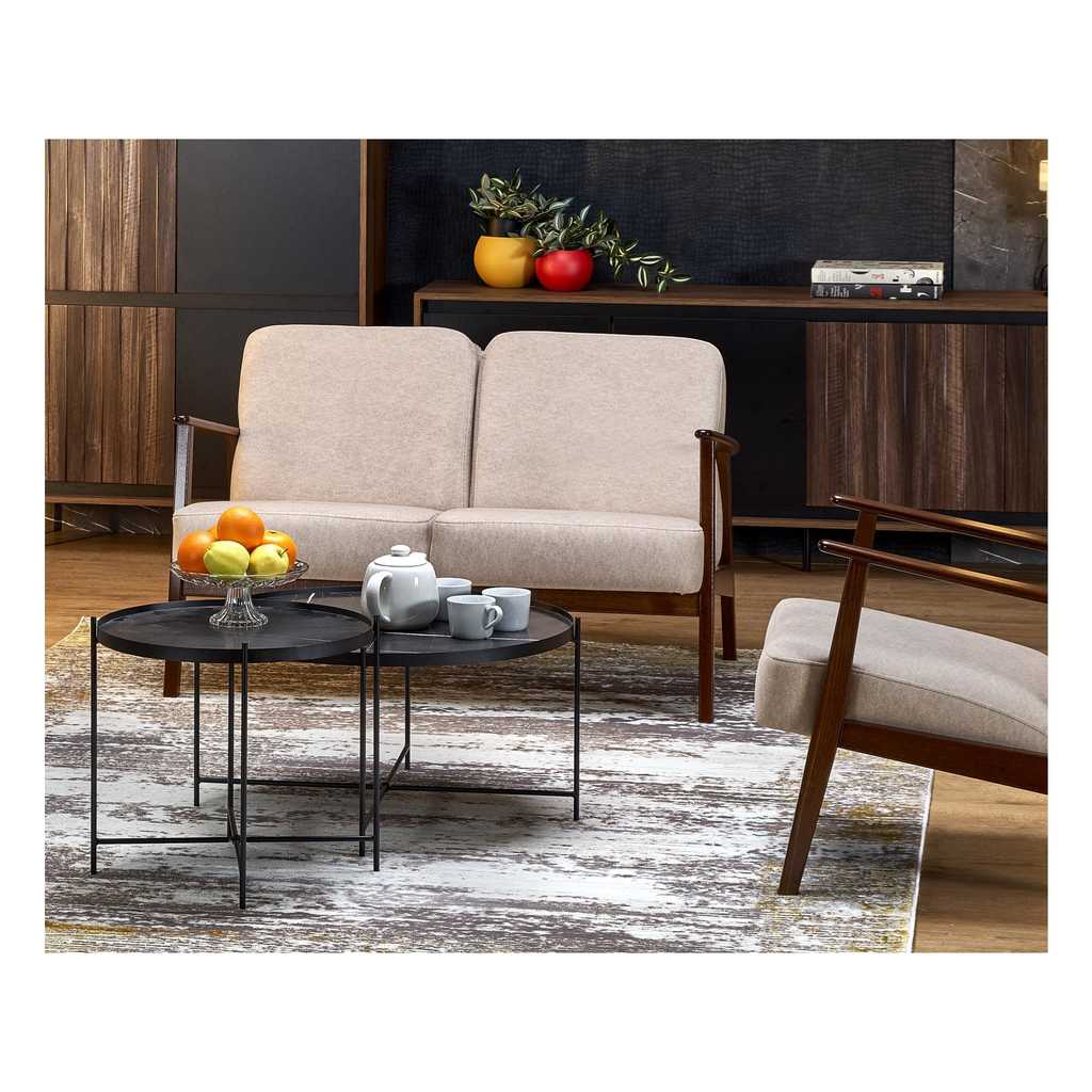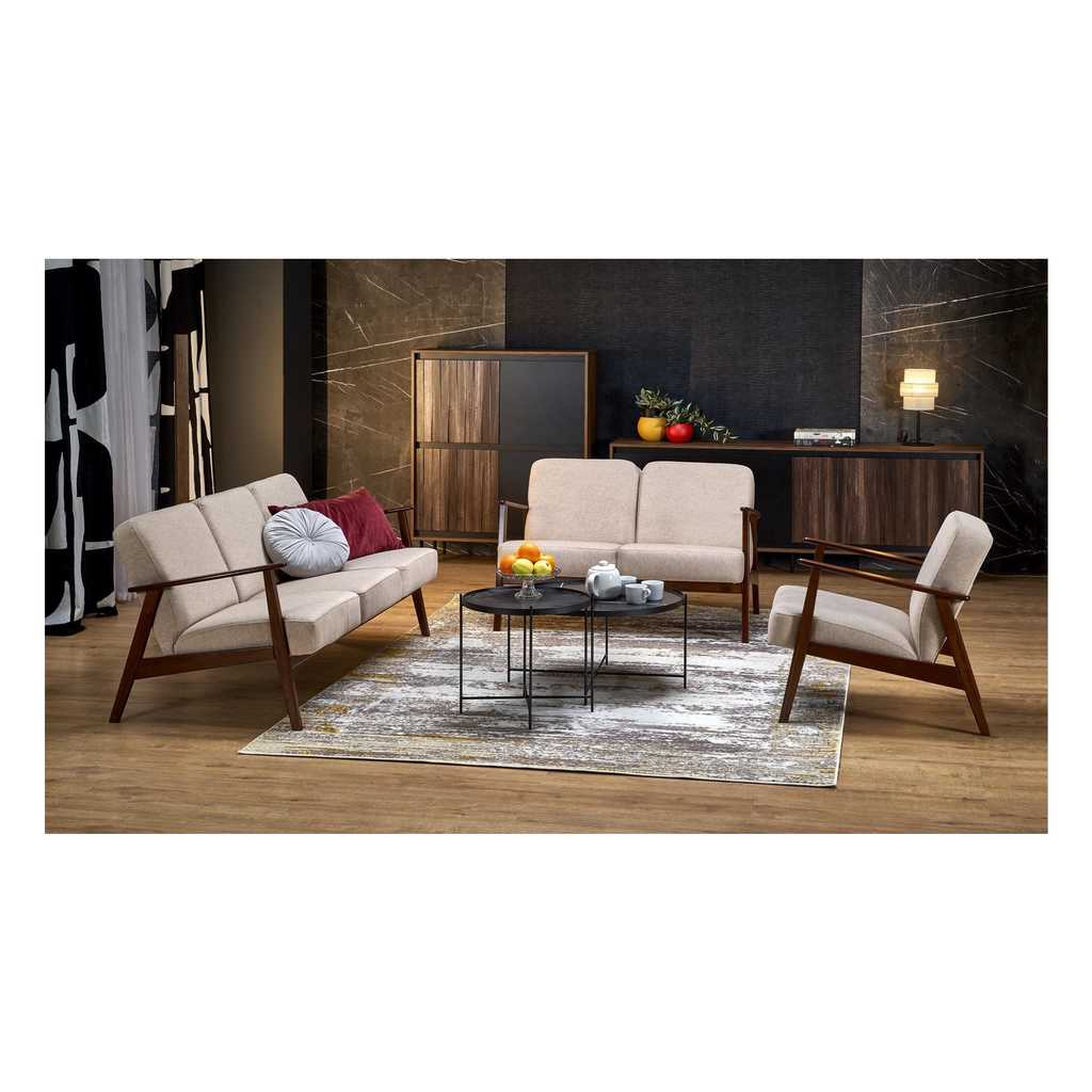 Canapeaua Tanti cu două locuri este alegerea ideală pentru spațiile care necesită confort și stil într-un design compact. Cu o construcție robustă din lemn și o tapițerie de stofă, această canapea oferă o experiență plăcută de relaxare pentru două persoane. Dimensiunile sale bine echilibrate fac posibilă integrarea ușoară în diverse încăperi, de la living până la birouri sau zone de recepție.