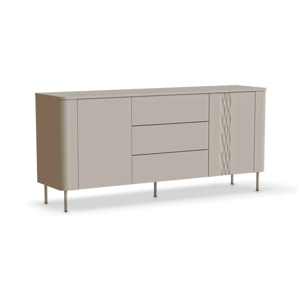 Comoda Paterma I este alegerea ideală pentru cei care își doresc un mobilier care îmbină elegant funcționalitatea cu un design sofisticat. Cu un stil clasic modern cu accente glamour, această comodă va aduce un plus de rafinament în orice spațiu de acasă sau birou.
