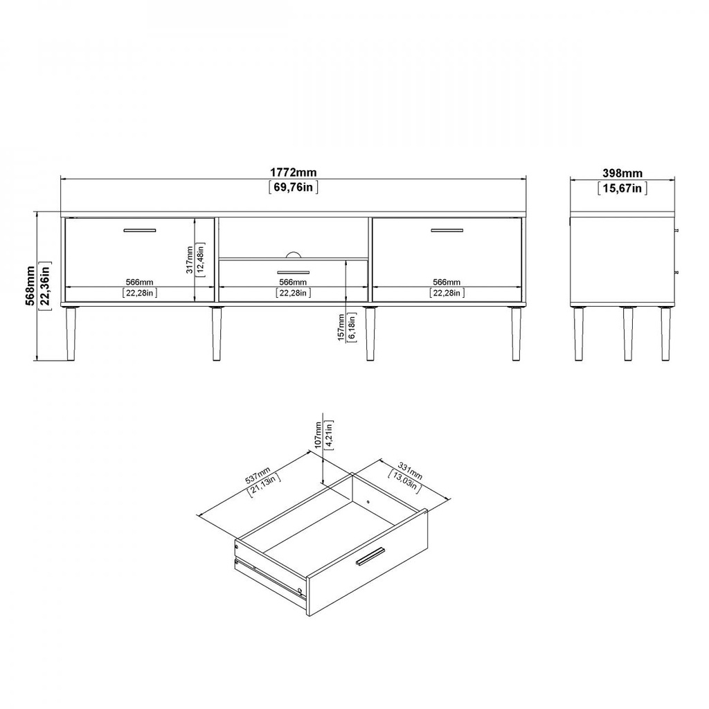 - Dimensiuni: lățime 177,2 cm, adâncime 39,8 cm, înălțime 56,8 cm