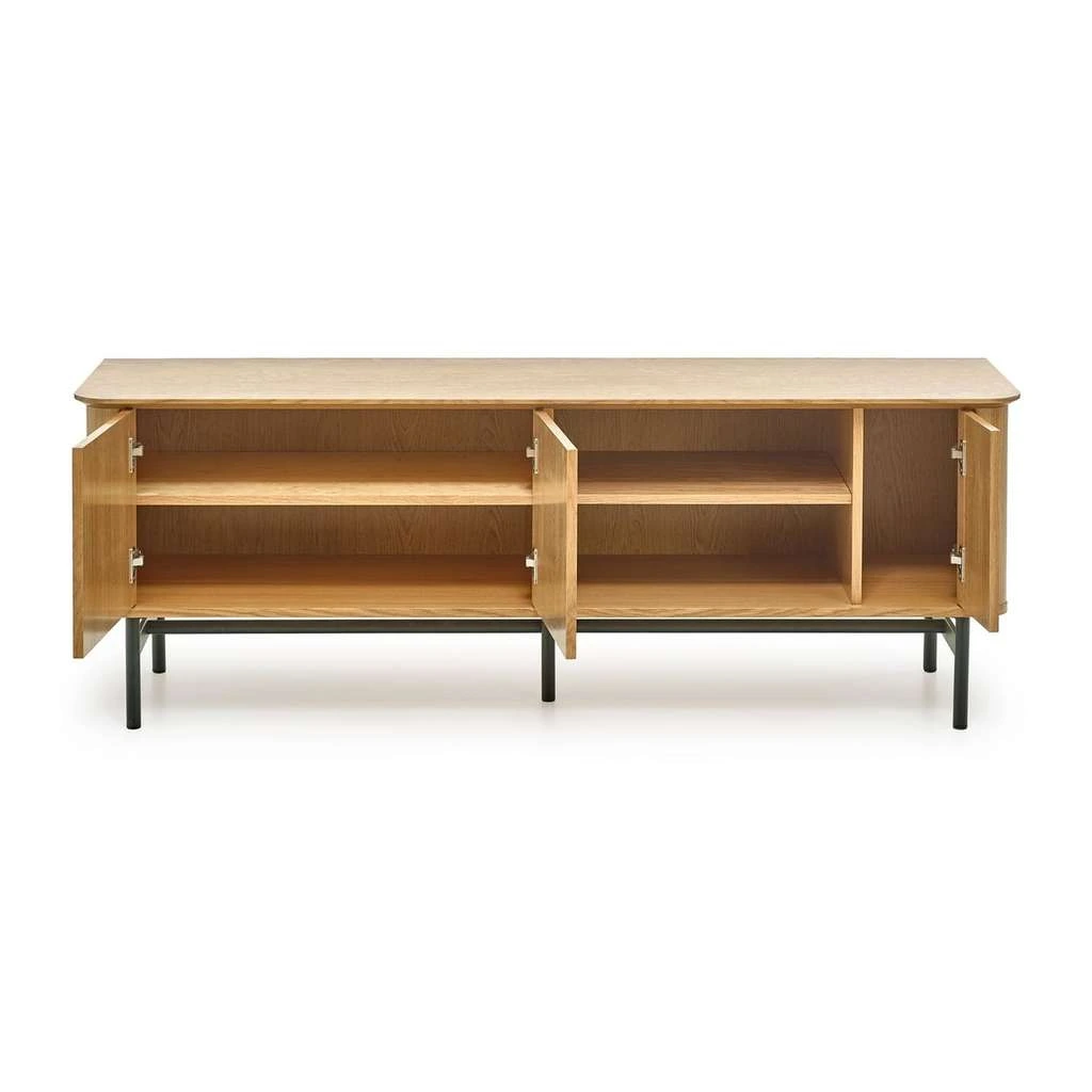 Comoda TV Passos îmbină perfect funcționalitatea cu designul elegant, aducând un aer modern și rafinat în orice living. Cu dimensiuni generoase, aceasta oferă spațiu suficient pentru televizor, dar și pentru alte accesorii sau echipamente multimedia datorită spațiului practic de depozitare. Blatul superior din lemn asigură o stabilitate și rezistență de durată, iar structura portantă robustă susține sigur întreaga piesă de mobilier.