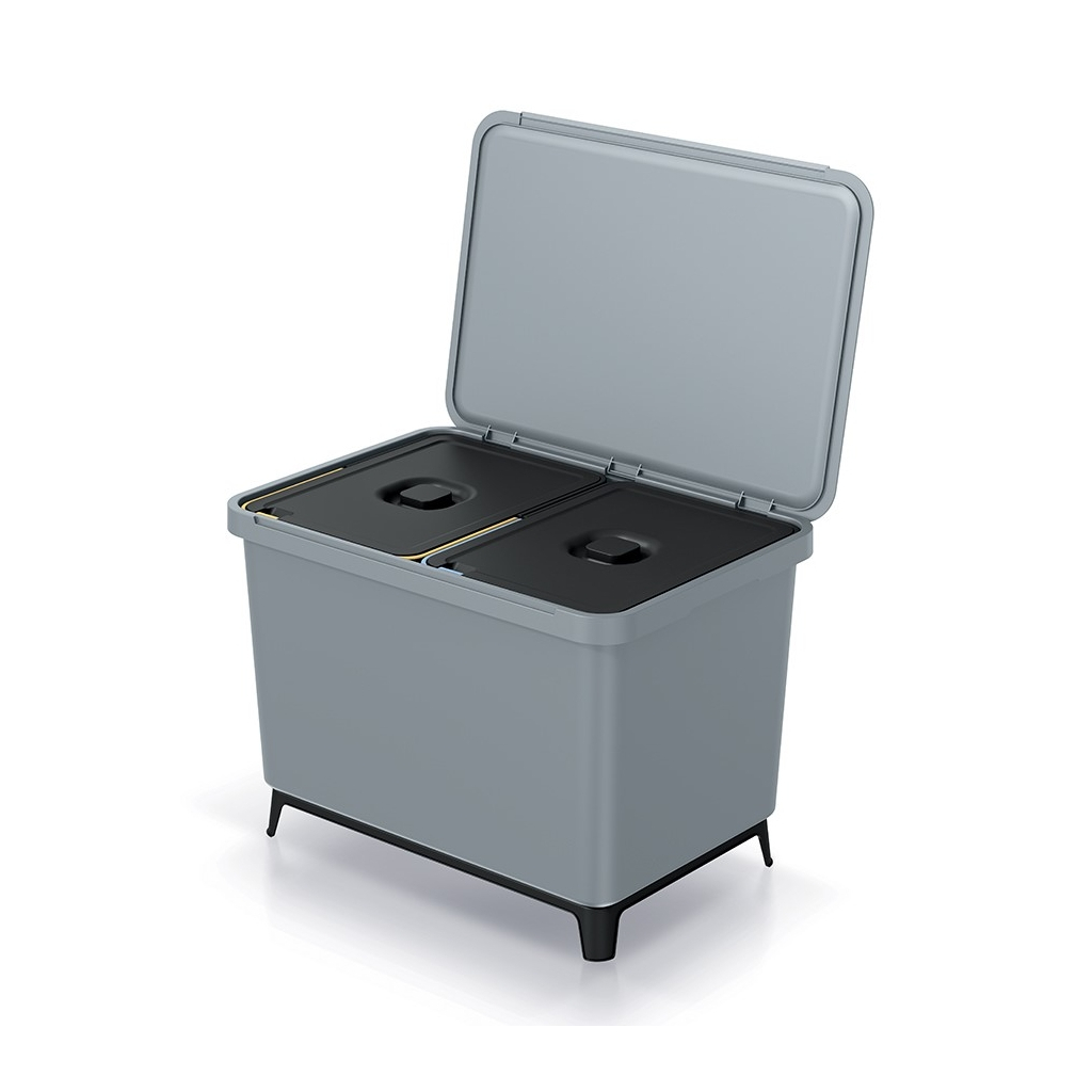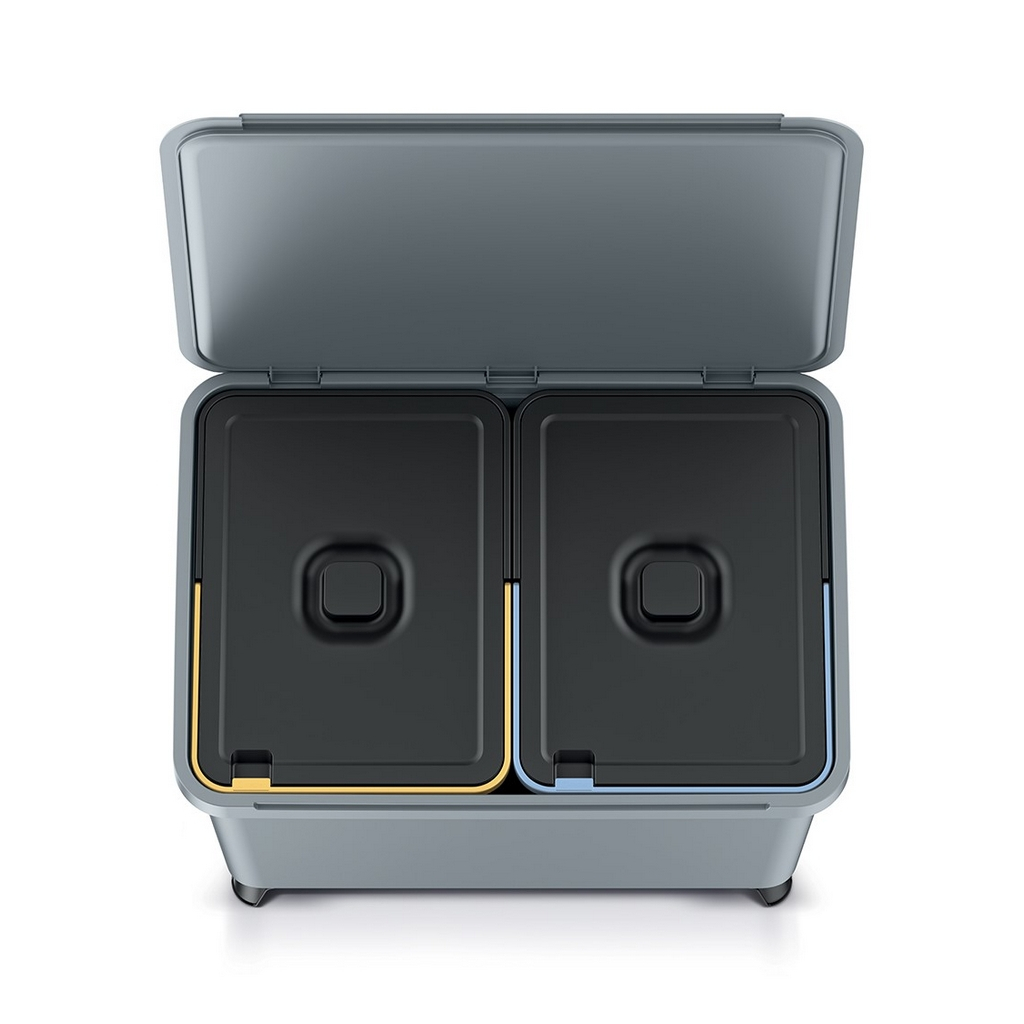 Coșul de gunoi cu două compartimente oferă o soluție practică și eficientă pentru gestionarea deșeurilor în spațiile casnice sau de birou. Cu un volum total de 46 litri și compartimente de 23 litri fiecare, vă permite să sortați ușor gunoiul reciclabile de cele nereciclabile.