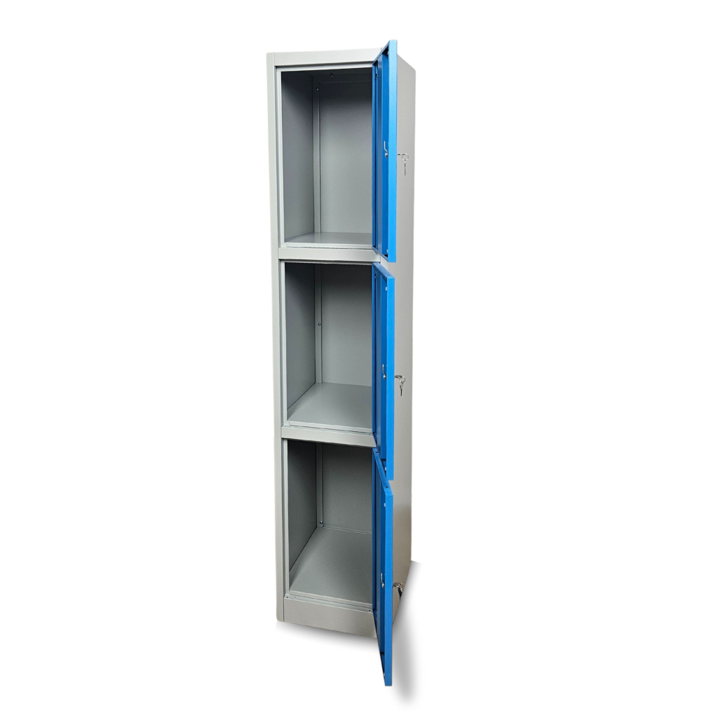 Acest dulap metalic este soluția ideală pentru organizarea eficientă și sigură a obiectelor personale sau a echipamentelor la locul de muncă sau în spații industriale. Cu trei compartimente separate, fiecare dotat cu uși care pot fi securizate cu lacăt, oferă protecție și acces facil. Designul cu picioare fixe înălțate asigură stabilitate și permite curățarea ușoară a spațiului de sub dulap.