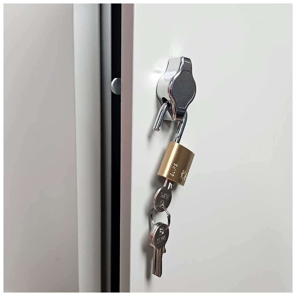 Materialul portan este metalul de grosime variabilă între 0,5 și 1,0 mm, oferind o rezistență solidă în timp. Sistemul de închidere prin lacăt adaugă un plus de siguranță obiectelor depozitate, fiind potrivit pentru un mediu de lucru, școli sau alte spații unde securitatea este importantă.
