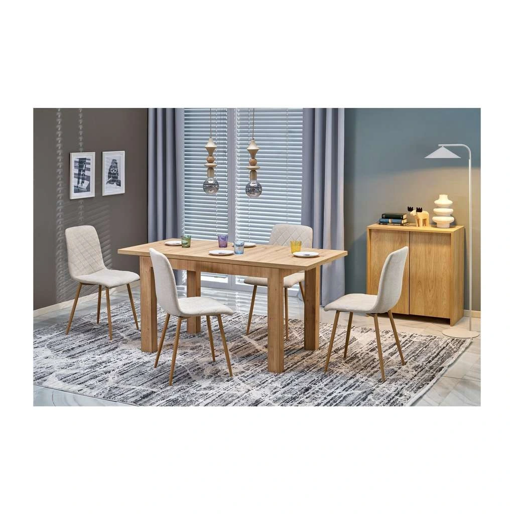 Masă de bucătărie Araxos este alegerea ideală pentru spațiile de luat masa unde funcționalitatea se combină cu un design simplu și elegant. Cu o lungime standard de 120 cm care poate fi extinsă până la 160 cm, această masă permite acomodarea confortabilă a până la 6 persoane, oferind flexibilitate atât pentru cinele în familie, cât și pentru evenimentele cu oaspeți.