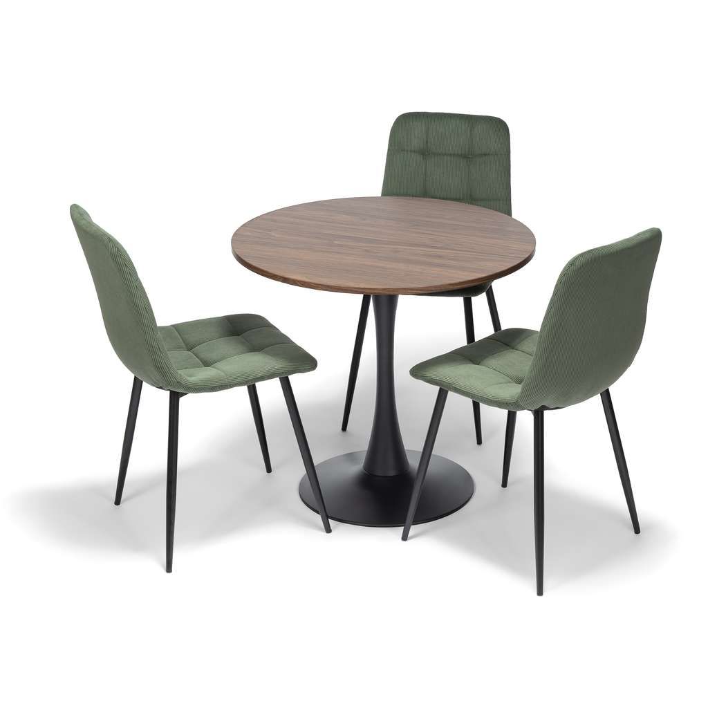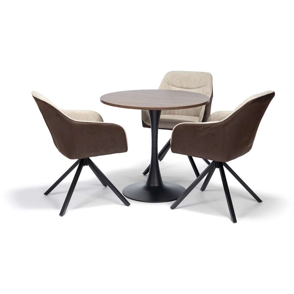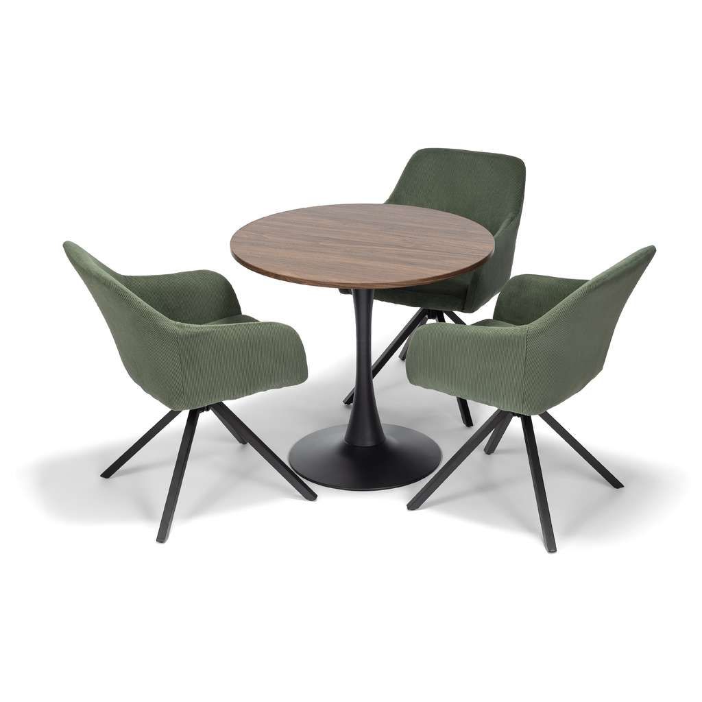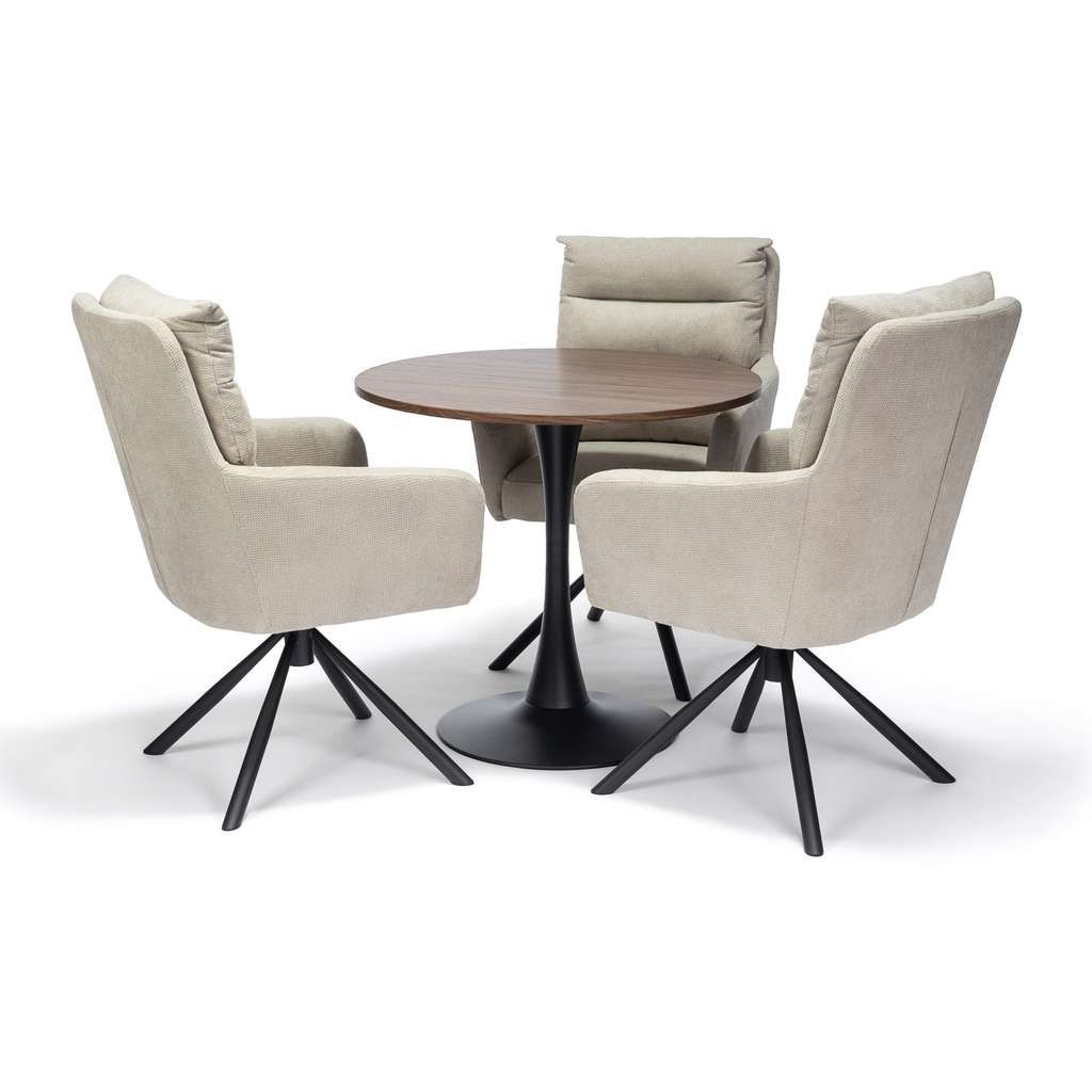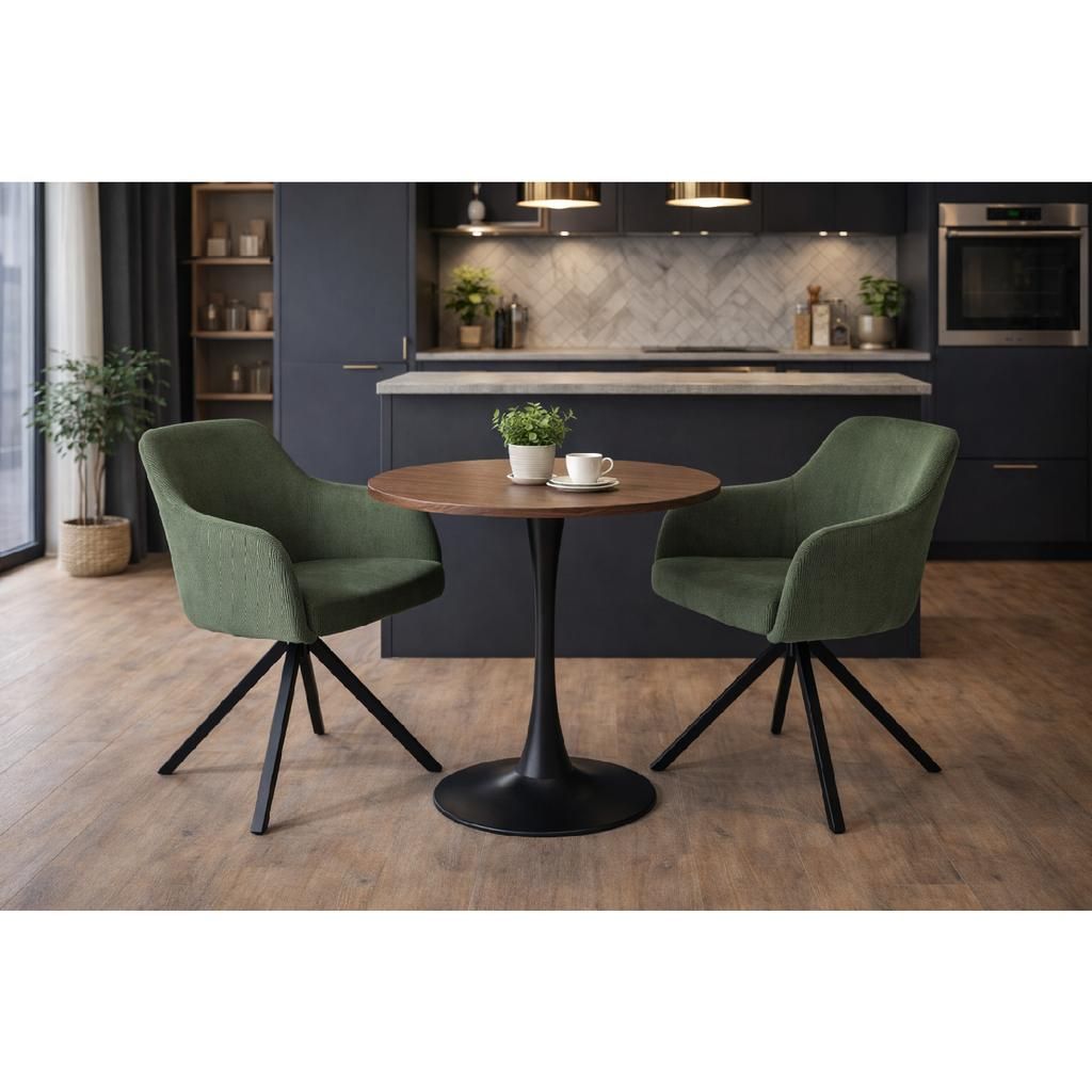 Masă de bucătărie Cubitas 80 impresionează prin designul său curat și elegant, fiind potrivită pentru spații mici precum bucătării, cafenele sau zone moderne de birouri. Blatul rotund din lemn adaugă un plus de căldură și naturalețe decorului ambiental, în timp ce picioarele metalice conferă stabilitate și o notă contemporană.