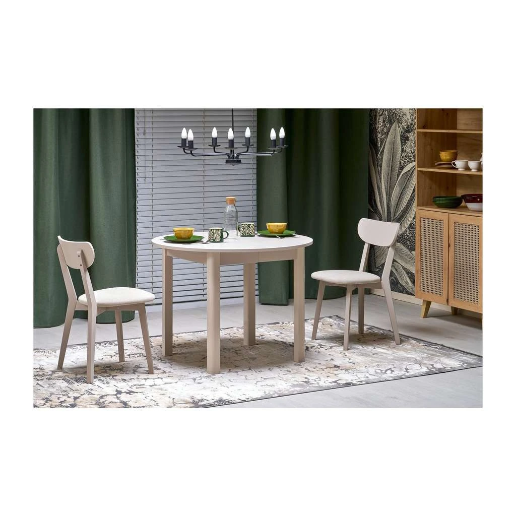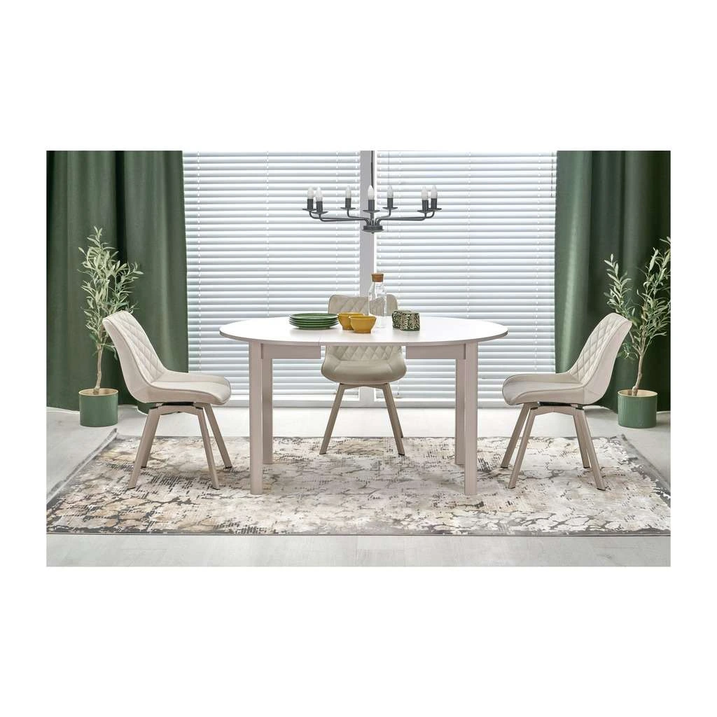 Unul dintre cele mai importante avantaje este mecanismul extensibil, care face această masă ideală pentru încăperi cu spațiu limitat. În starea sa inițială, masa are un diametru confortabil pentru 4 persoane, dar poate fi extinsă cu ușurință până la 142 cm pentru a acomoda până la 6 persoane – perfectă pentru momentele când aveți musafiri.