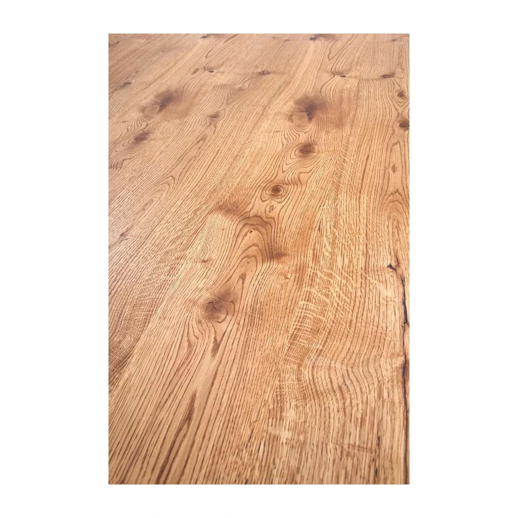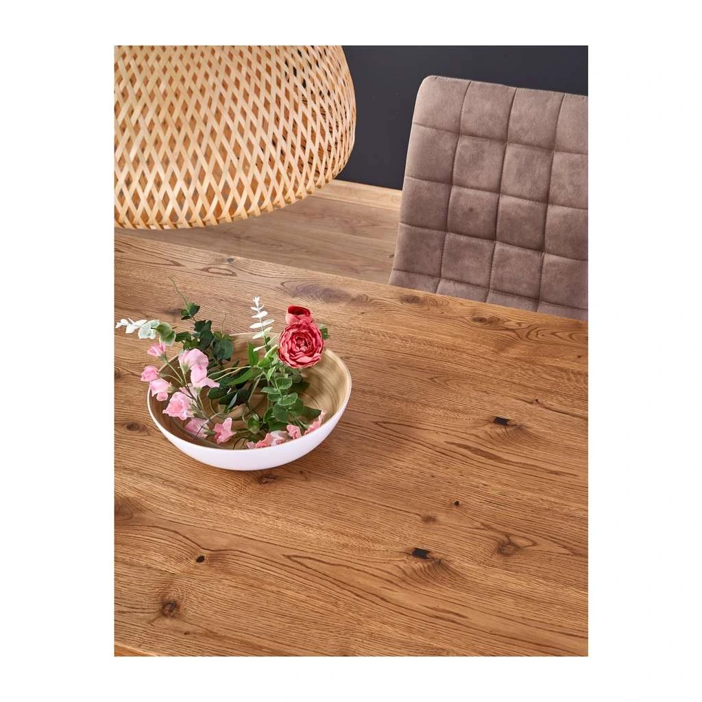 Blatul mesei este confecționat din lemn natural, conferindu-i un aspect robust și cald, în timp ce picioarele din metal rezistent oferă stabilitate și un plus de modernitate. Forma dreptunghiulară este ideală pentru a optimiza spațiul în bucătăria sau sala ta de mese.