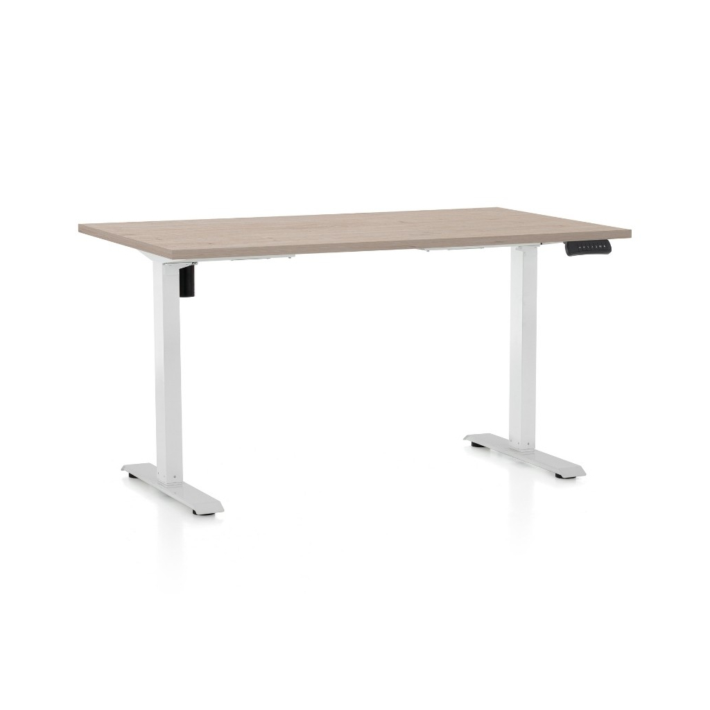 Designul său modern combină o suprafață rezistentă, cu grosimea de 25 mm, și o bază metalică robustă, asigurând stabilitate și durabilitate pe termen lung. Sistemul de reglare mechanizat, cu un singur motor și butoane intuitive care includ funcții de memorie, face ajustarea ușoară și rapidă, adaptându-se nevoilor fiecărui utilizator.