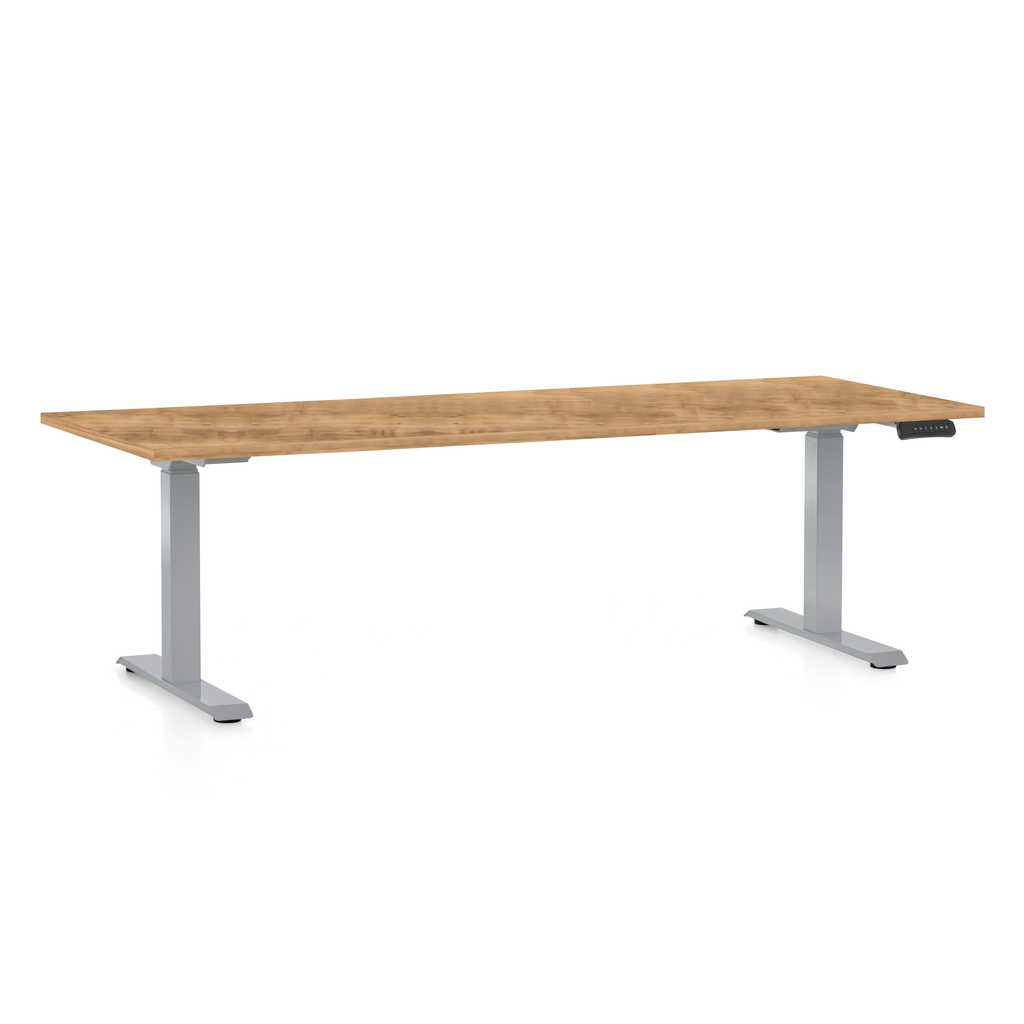 Masă înălțime reglabilă OfficeTech D, 200 x 80 cm, picioare gri, stejar auriu