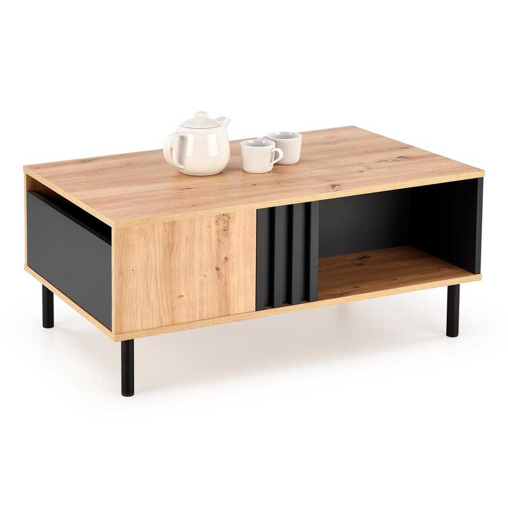 Măsuța de cafea Giselle combină un design modern cu funcționalitatea practică, fiind ideală pentru spațiile de zi contemporane. Realizată cu o placă superioară din lemn și picioare metalice, această măsuță oferă o stabilitate solidă și durabilitate pe termen lung, susținută de o garanție de 5 ani.