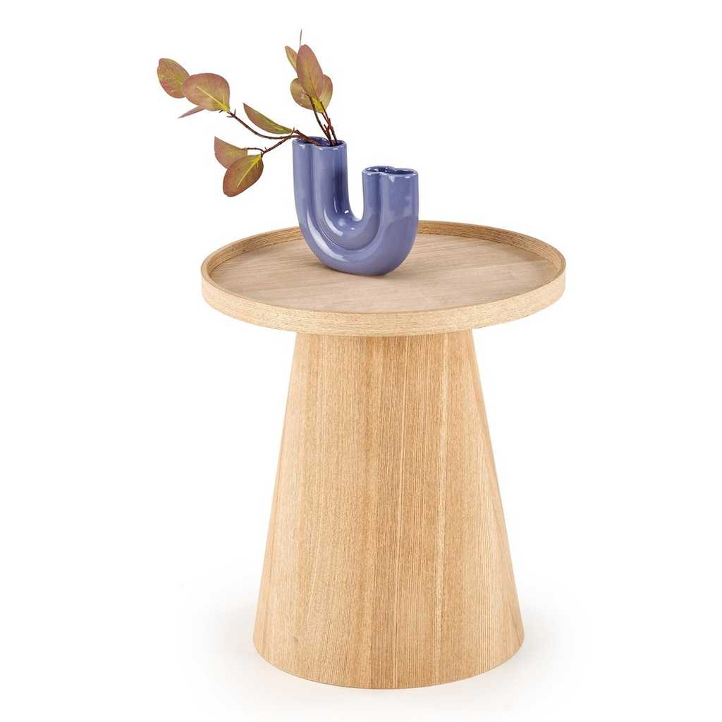 Măsuța de cafea Kai este un accesoriu elegant și funcțional pentru orice spațiu de relaxare. Fabricată din lemn natural, această măsuță adaugă un plus de căldură și stil încăperii tale, datorită designului său simplu și formei circulare ce facilitează accesul la obiectele așezate pe ea.