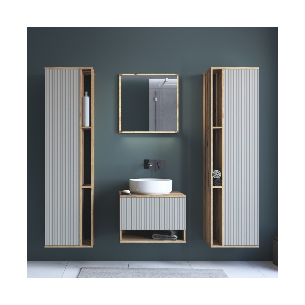 Oglindă de perete Pulcro, 60 cm, argint / stejar artisan