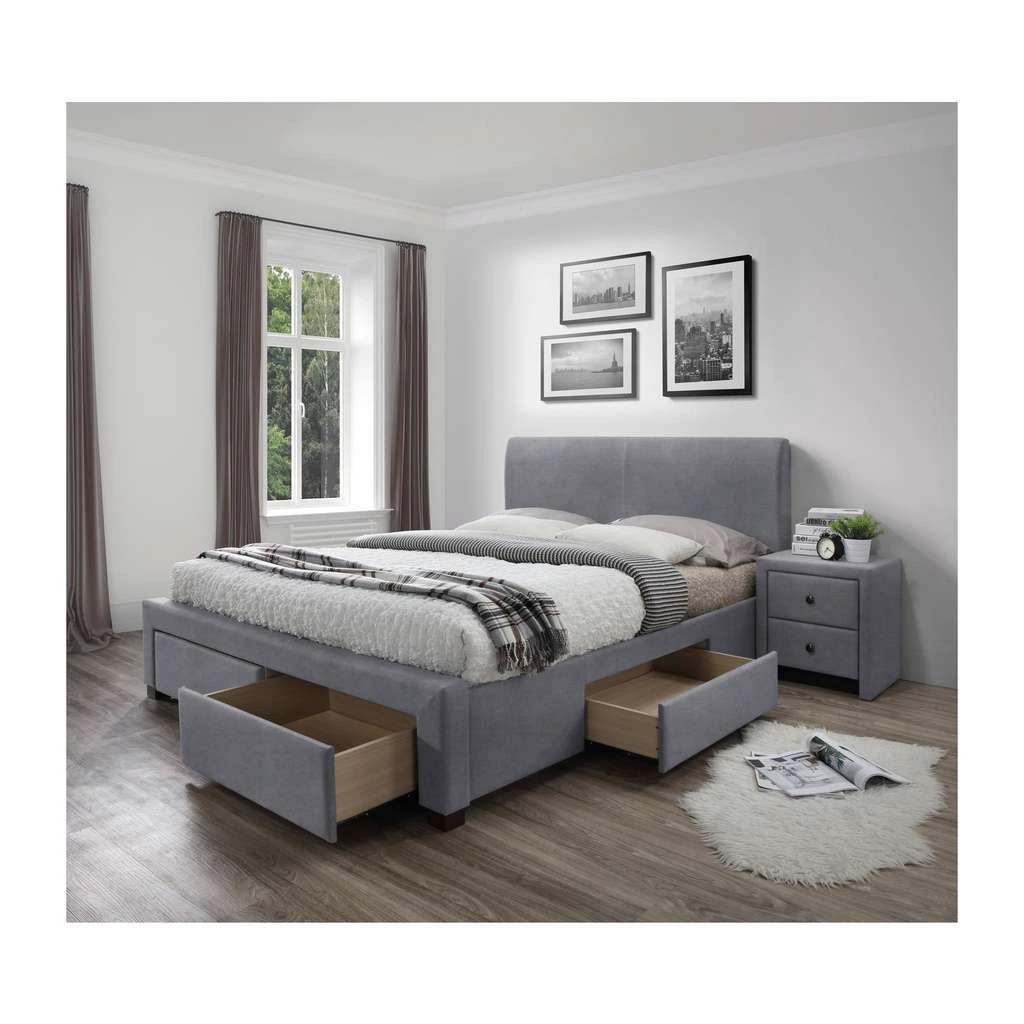 Construcția robustă și capacitatea portantă de până la 200 kg garantează durabilitatea și stabilitatea patului, iar tapițeria din stofă adaugă un plus de eleganță și textură plăcută la atingere. În plus, spațiul de depozitare integrat este un avantaj practic pentru organizarea eficientă a lucrurilor, ajutând la menținerea unei camere ordonate.