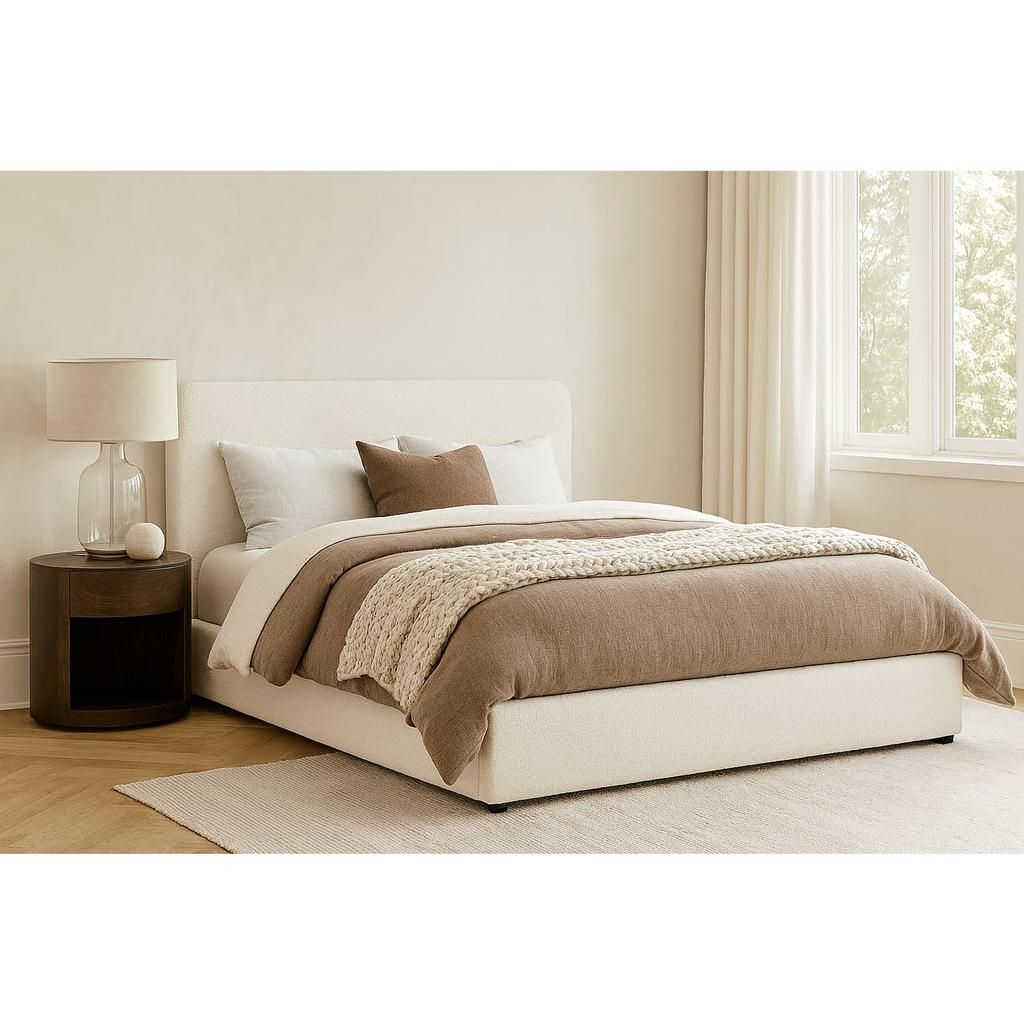 Tapițeria din stofă adaugă un plus de confort și estetică, integrându-se ușor în orice stil de decor, de la cel minimalist la cel contemporan. Înălțimea plăcii spate de 87 cm permite sprijinirea confortabilă, ideală pentru relaxare sau citit în pat.