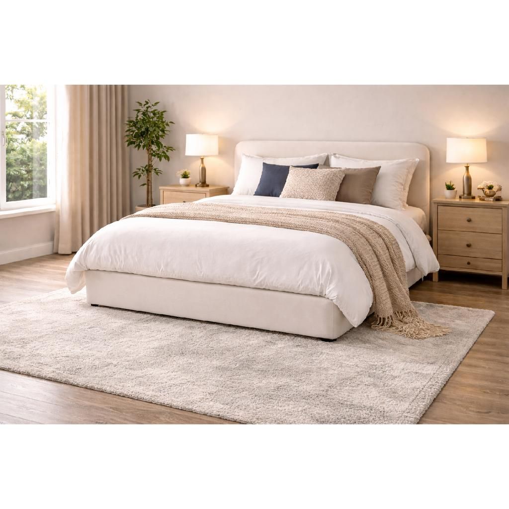 Tapițeria din stofă adaugă o notă de eleganță și confort, în timp ce dimensiunile generoase ale patului oferă suficient spațiu pentru un somn odihnitor. Designul simplu și proporțiile echilibrate fac ca Patul Venada să se integreze ușor în orice tip de amenajare interioară.