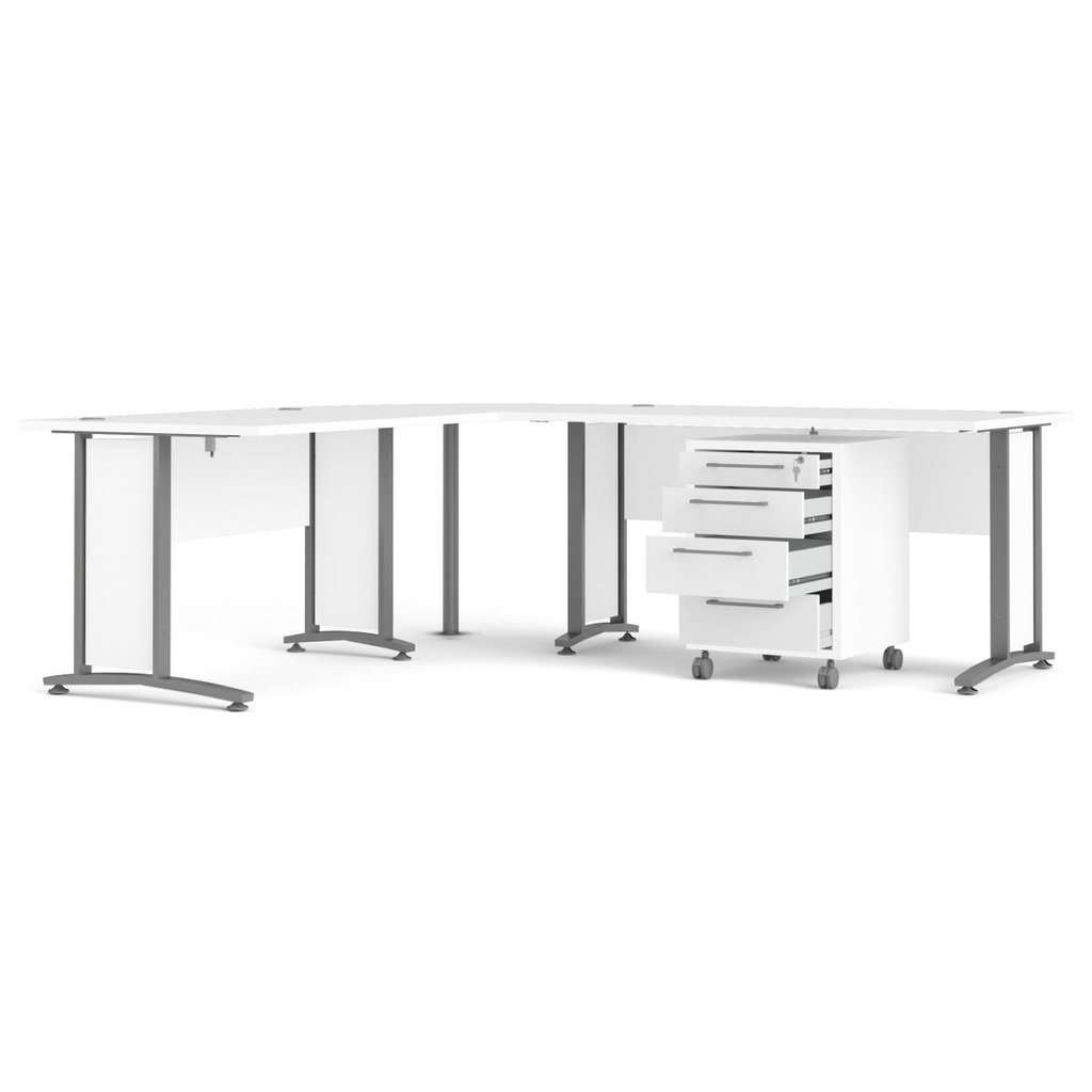 Post de lucru de colț Modulo 230 x 200 cm, alb / gri