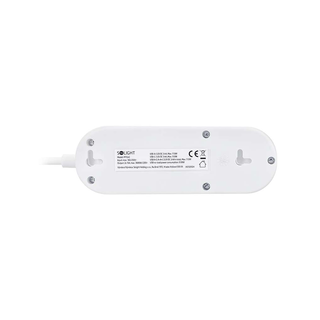 Prelungitor 2 prize + 2x USB A + USB C - 1,5m, 3x1,0, alb