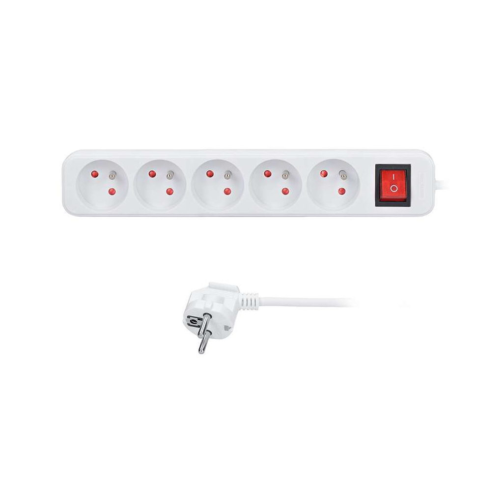 Prelungitor 5 prize – 5m, întrerupător, 3x1,5, alb