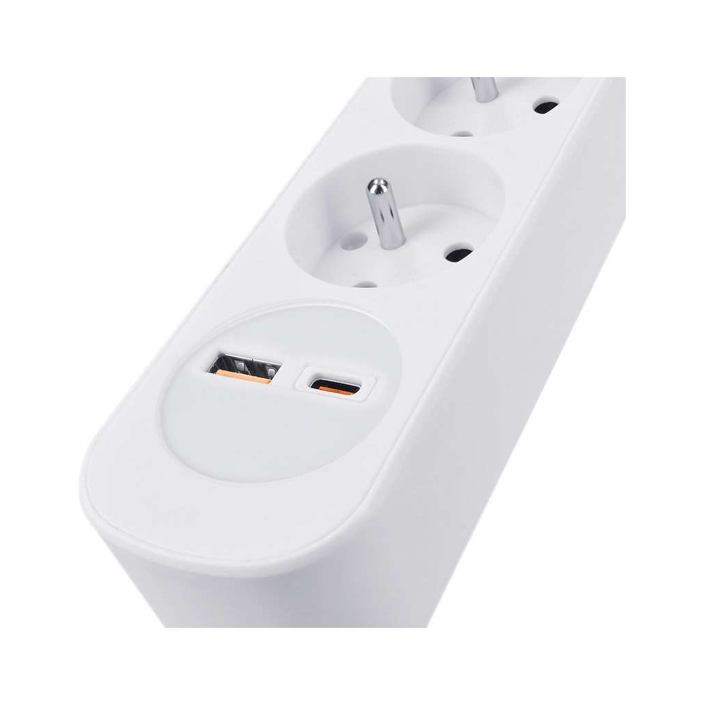 Prelungitor 5 prize + USB A + USB C - 3m, întrerupător, 3x1,0, alb