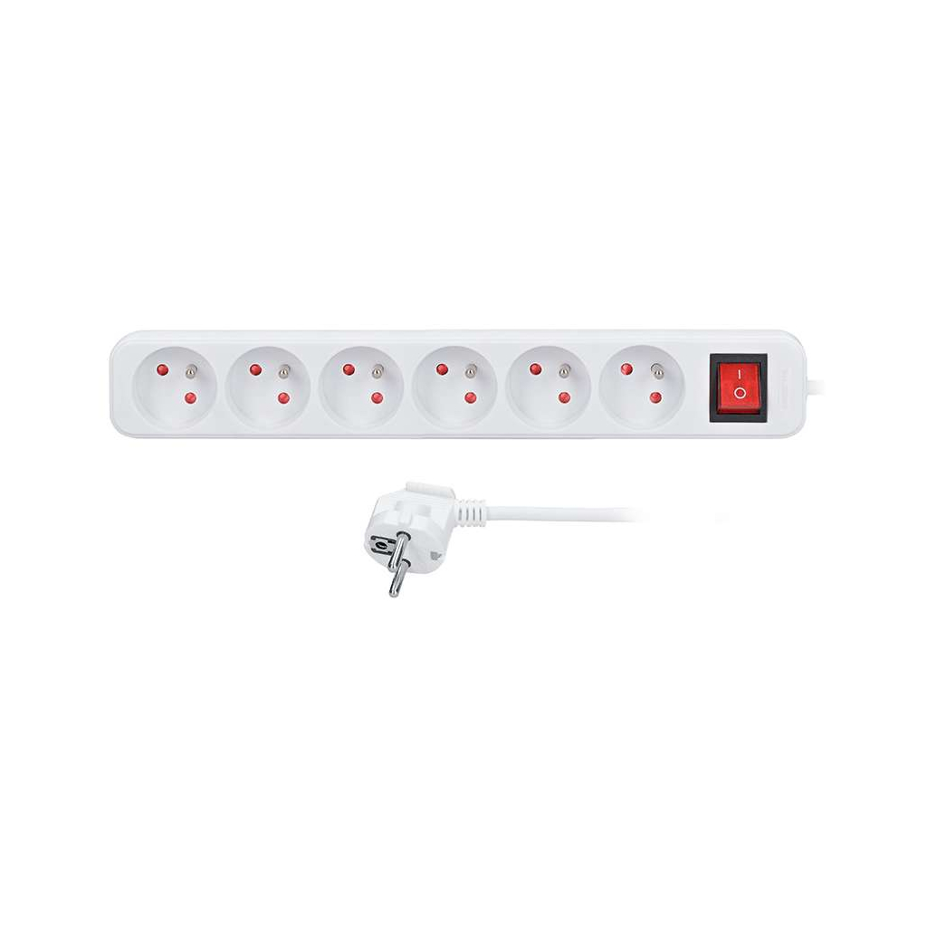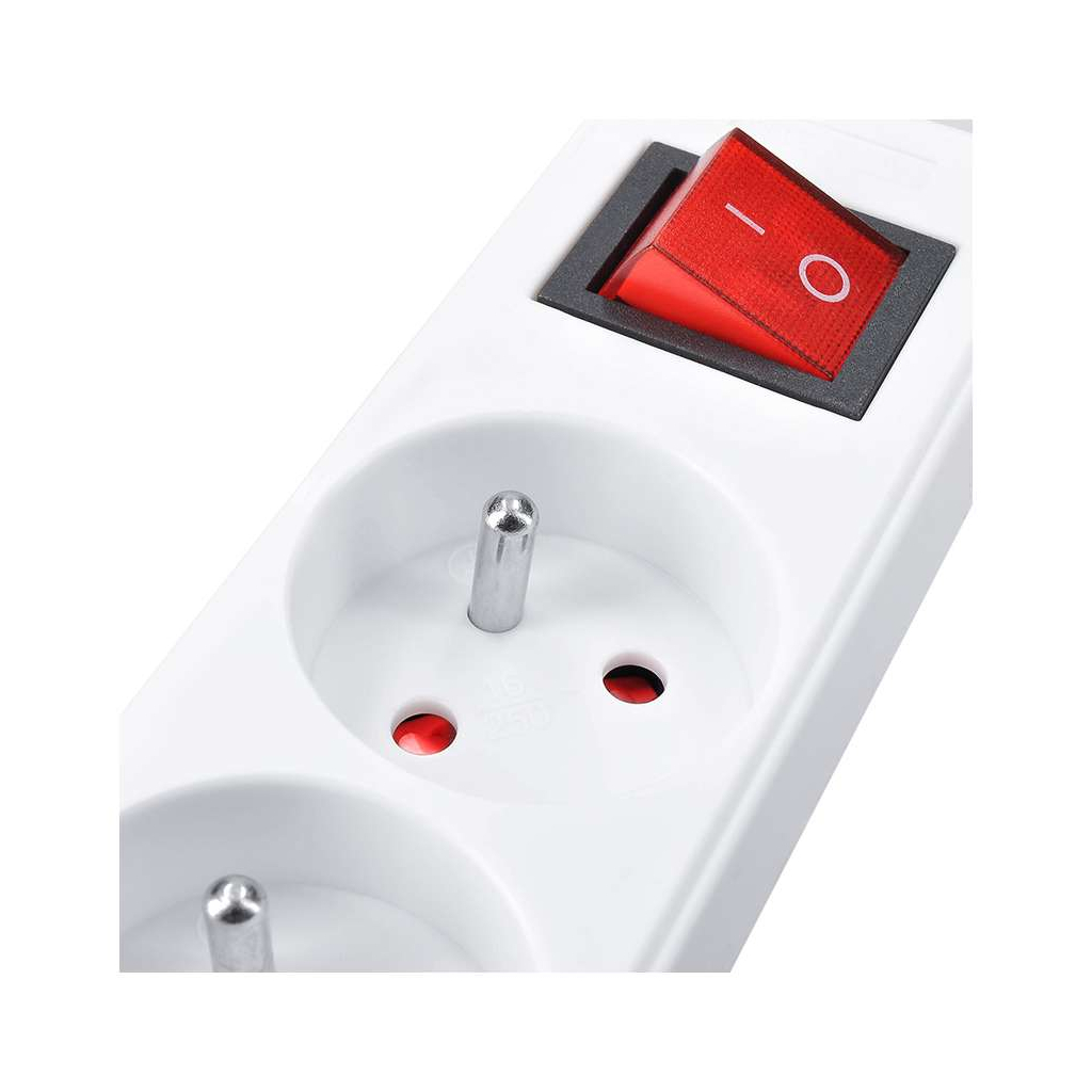 Prelungitor 6 prize – 3m, întrerupător, 3x1,5, alb