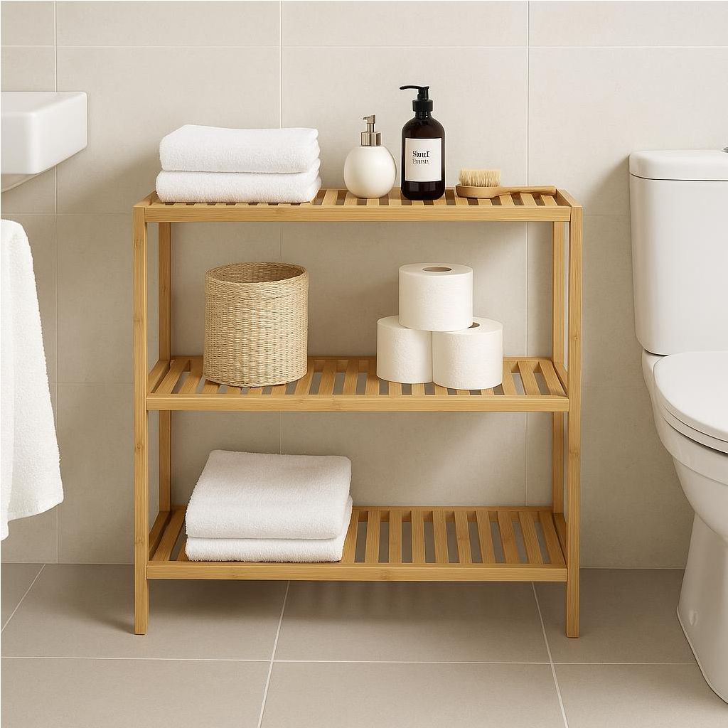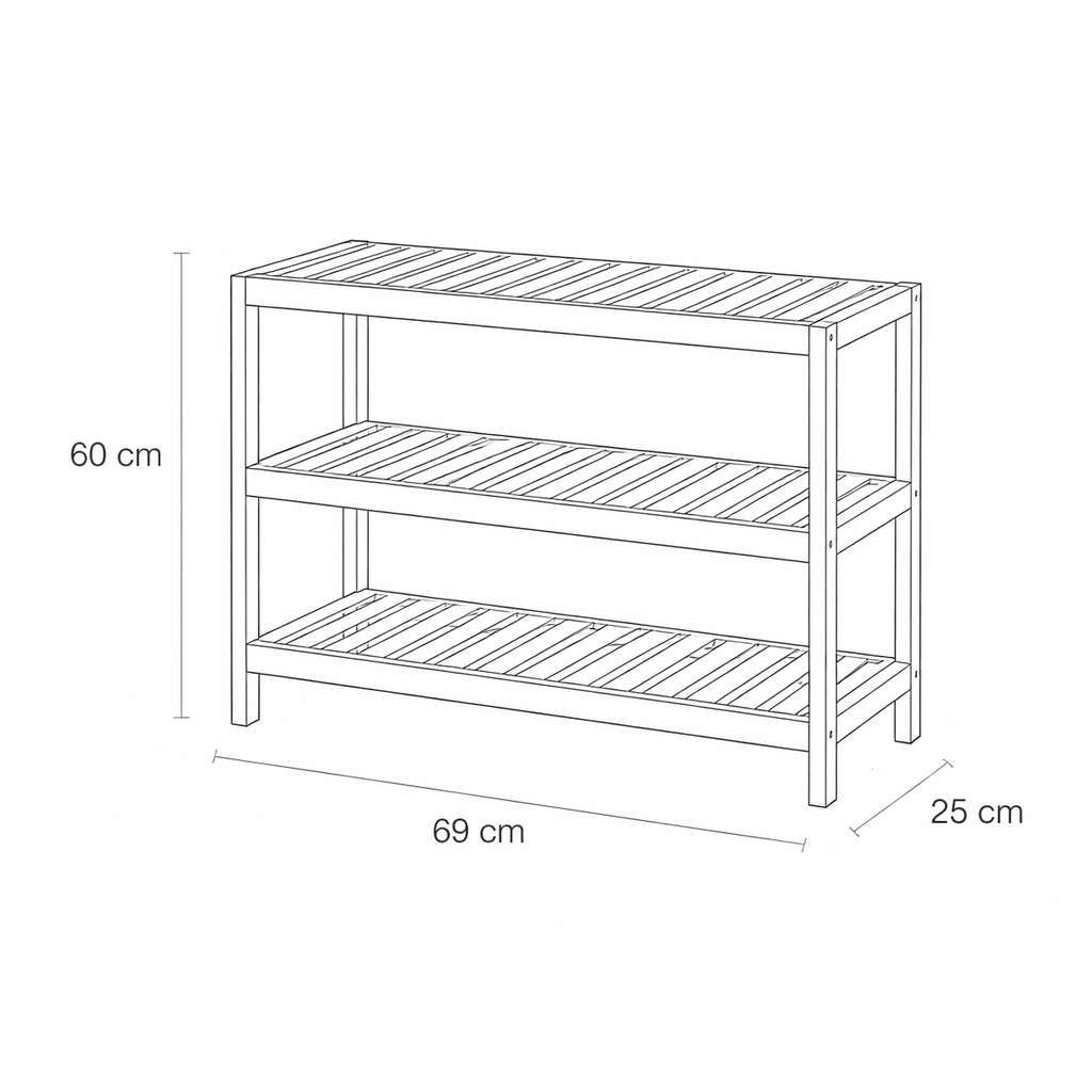 Cu trei polițe spațioase, acest raft este ideal pentru depozitarea diverselor obiecte, de la cărți și decorațiuni până la prosoape sau alte accesorii casnice. Dimensiunile compacte îl fac potrivit pentru spații variate, cum ar fi holul, baia, bucătăria sau livingul, adaptându-se cu ușurință oricărui stil de amenajare.