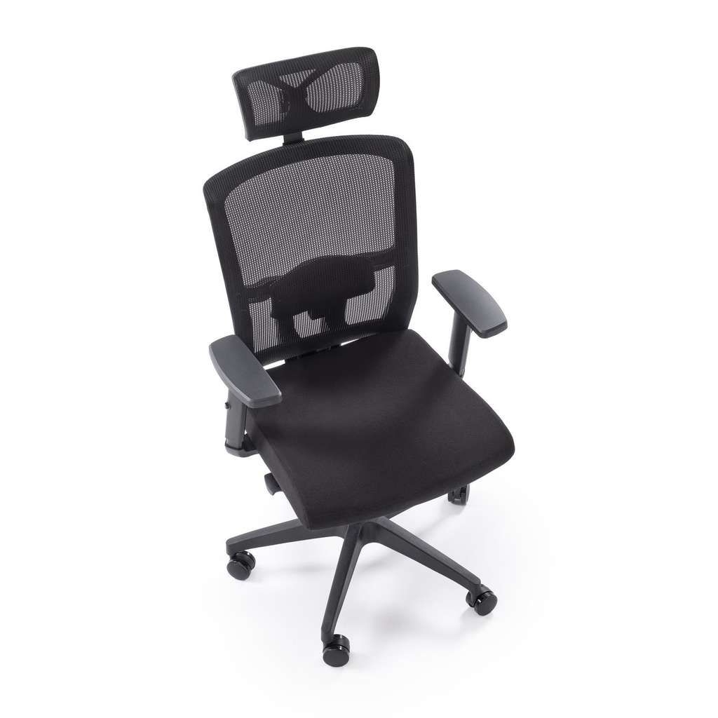 Reglajele multiple, inclusiv tetiera și brațele reglabile, permit personalizarea scaunului în funcție de nevoile fiecărui utilizator, iar tapițeria din plasă și stofă asigură o ventilație bună și confort sporit pe parcursul zilei de lucru. Cu o greutate de 14,5 kg și roți universale, scaunul este ușor de manevrat și stabil.