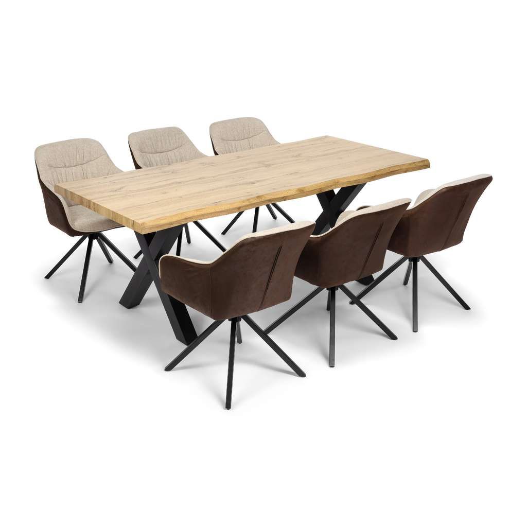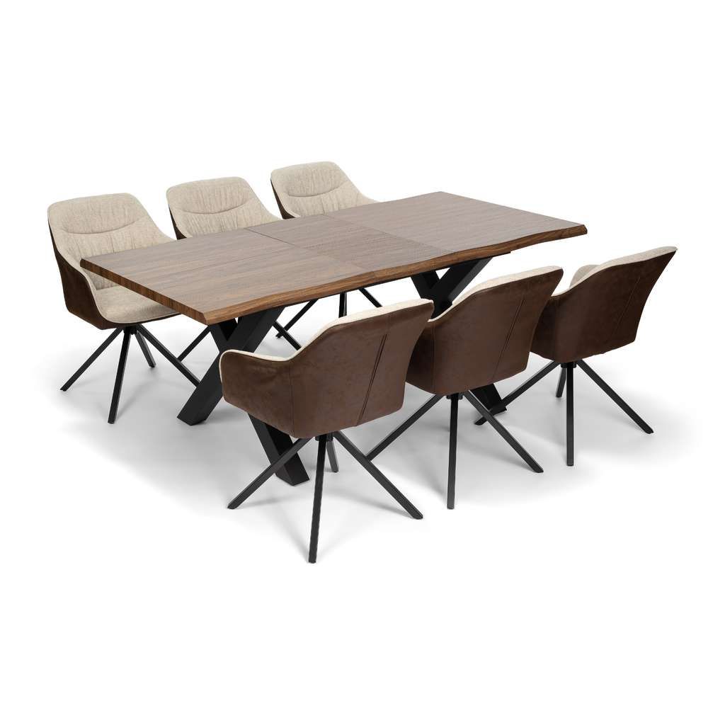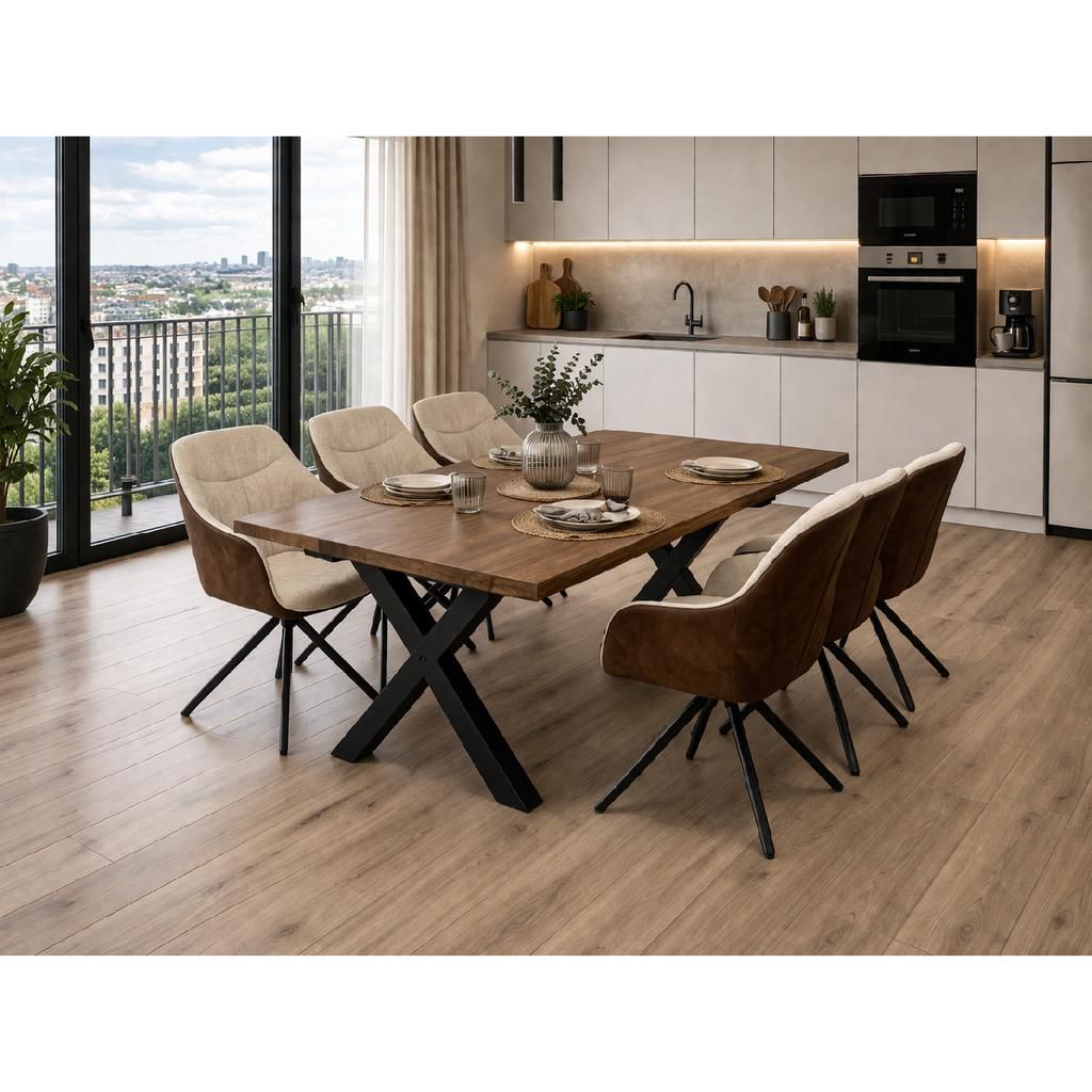 Scaunul de bucătărie Azufre combină un design retro cu funcționalitatea modernă, fiind o alegere excelentă pentru orice spațiu de dining sau birou. Cu o structură robustă din metal și un șezut confortabil din stofă și piele, acest scaun oferă susținere optimă și confort de lungă durată. Baza pivotantă permite rotația ușoară, oferind libertate de mișcare fără a fi nevoie să mutați scaunul.