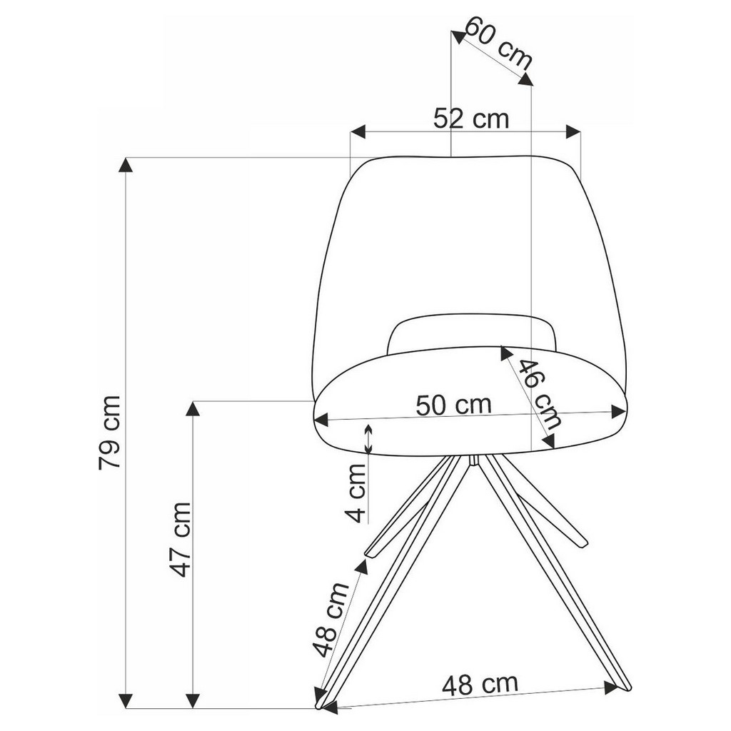 - Dimensiuni: lățime 60 cm, adâncime 52 cm, înălțime 79 cm