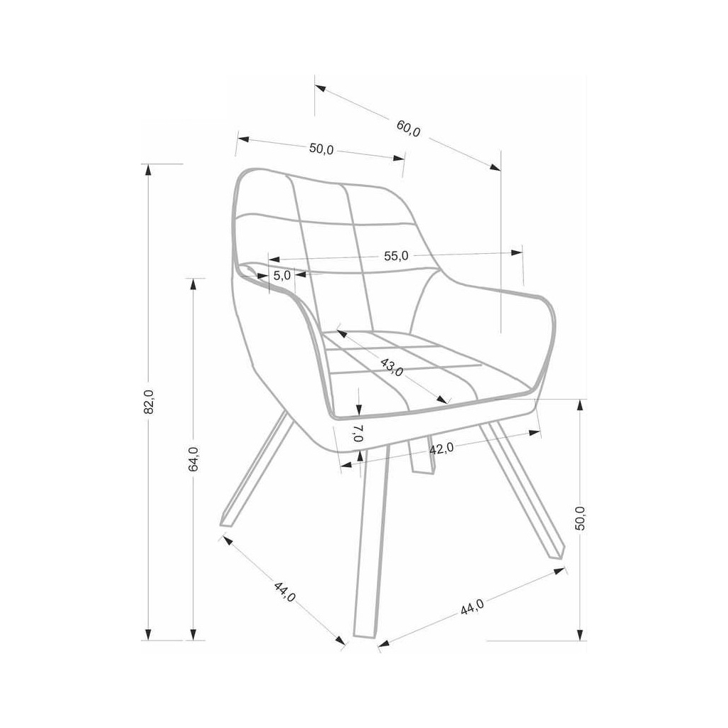 - Șezut: 42 cm lățime, 43 cm adâncime, 50 cm înălțime