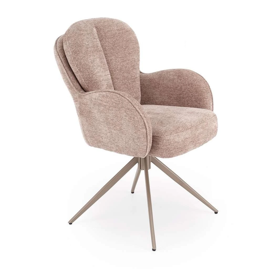 Scaunul de bucătărie Kalfas aduce un plus de eleganță și confort în orice spațiu de dining sau bucătărie. Designul său în stil scandinav combinat cu accentele clasice moderne îl recomandă pentru interioare moderne și rafinate. Baza pivotantă oferă libertate de mișcare, iar brațele fixe asigură o poziție confortabilă pe durata șederii.