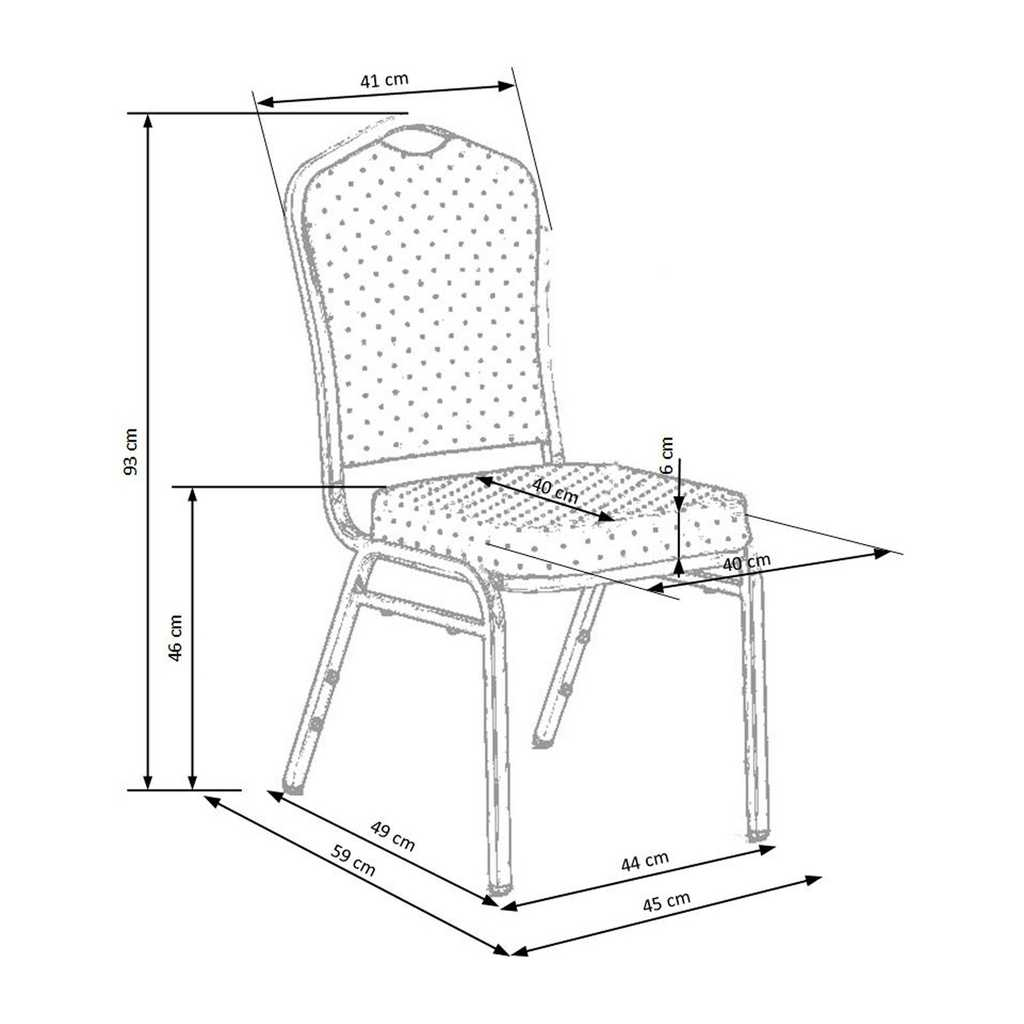 Construcția robustă cu picioare metalice asigură o stabilitate excelentă și o capacitate portantă sigură de până la 100 kg. Tapițeria din stofă oferă un confort plăcut la șezut și spătar, asigurând o experiență comodă chiar și în timpul meselor prelungite.