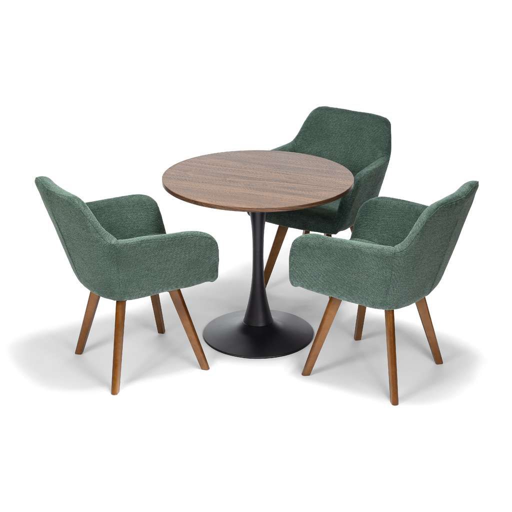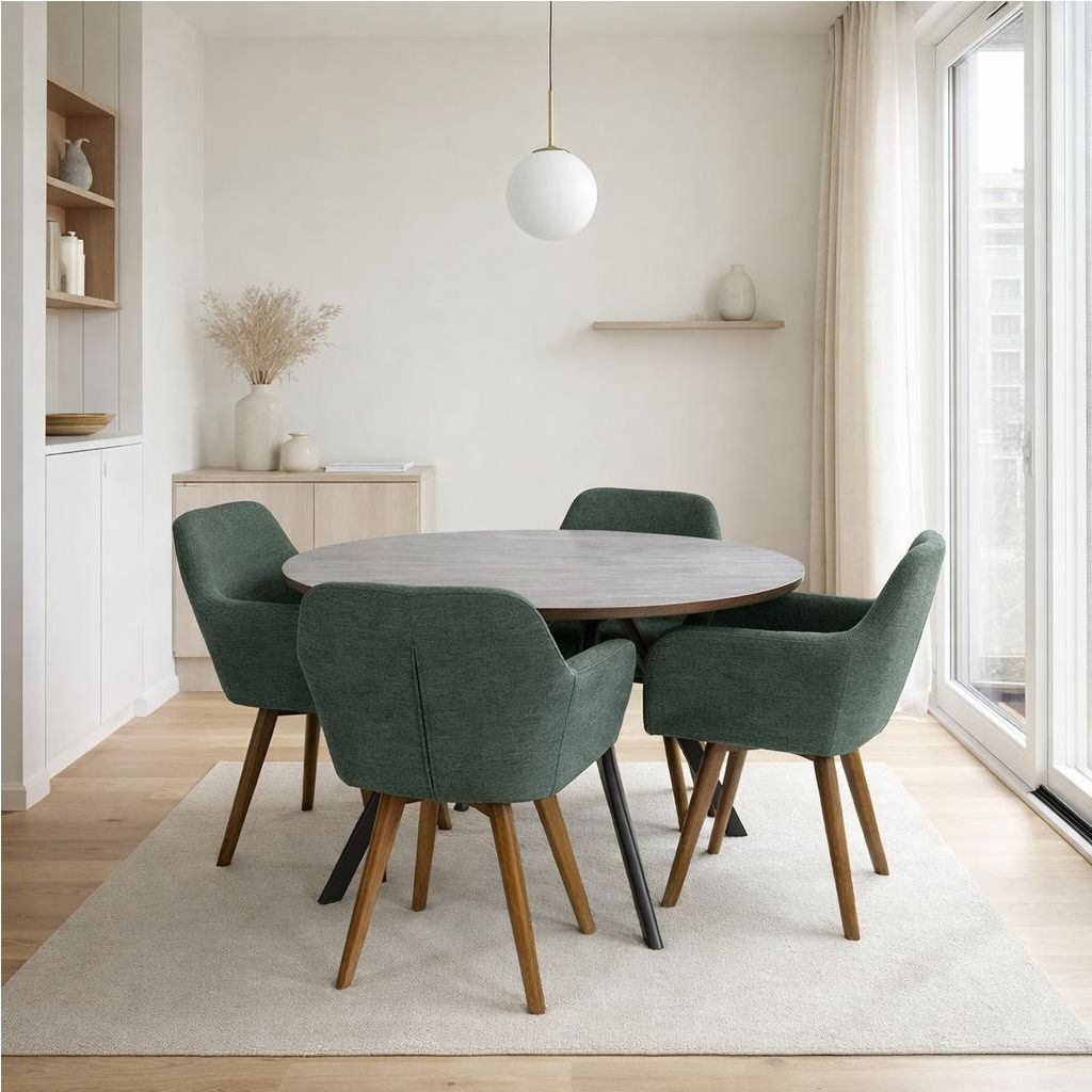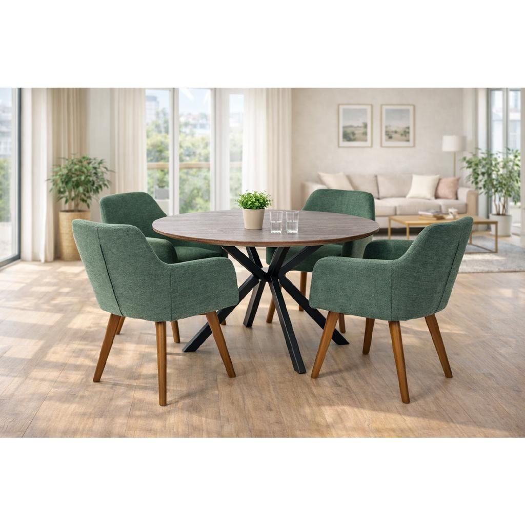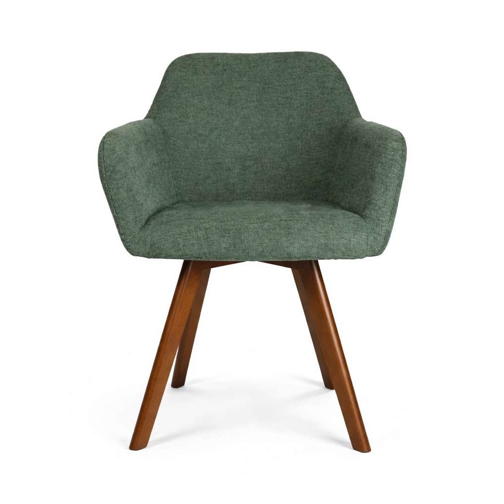 Construcția robustă cu picioare din lemn conferă scaunului atât rezistență, cât și un aspect cald și primitor. Tapițeria din stofă conferă o notă de rafinament și aduce un plus de eleganță, fiind ușor de integrat în diverse stiluri de amenajare a bucătăriei sau sufrageriei.