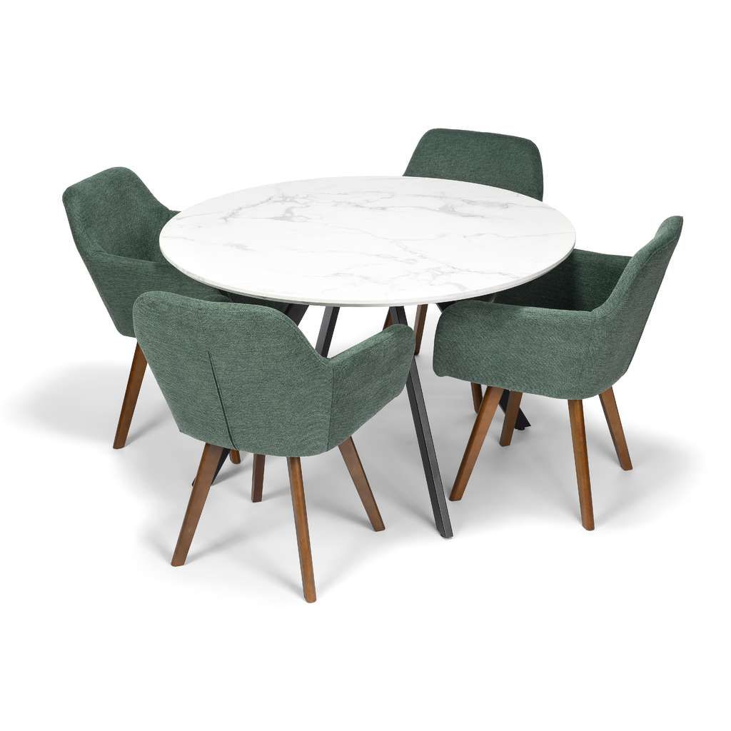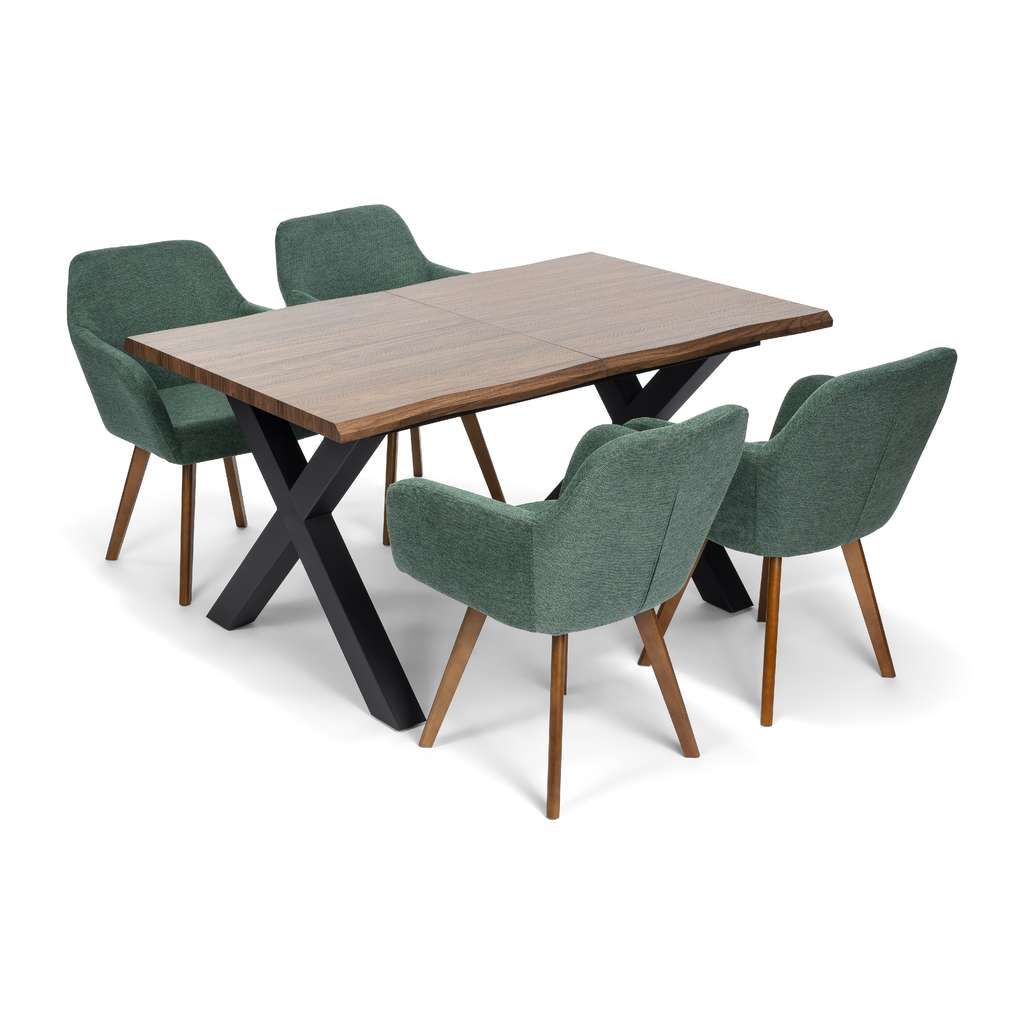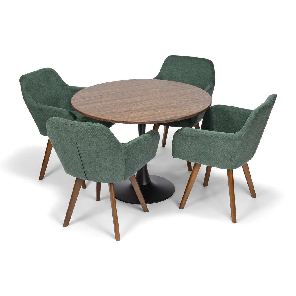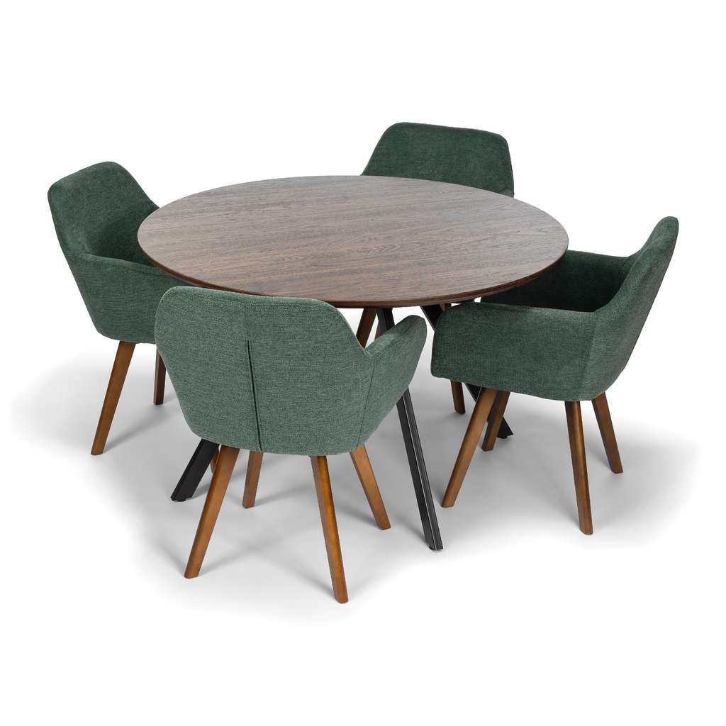 Construcția robustă cu picioare din lemn conferă scaunului atât rezistență, cât și un aspect cald și primitor. Tapițeria din stofă conferă o notă de rafinament și aduce un plus de eleganță, fiind ușor de integrat în diverse stiluri de amenajare a bucătăriei sau sufrageriei.