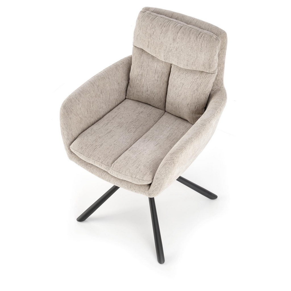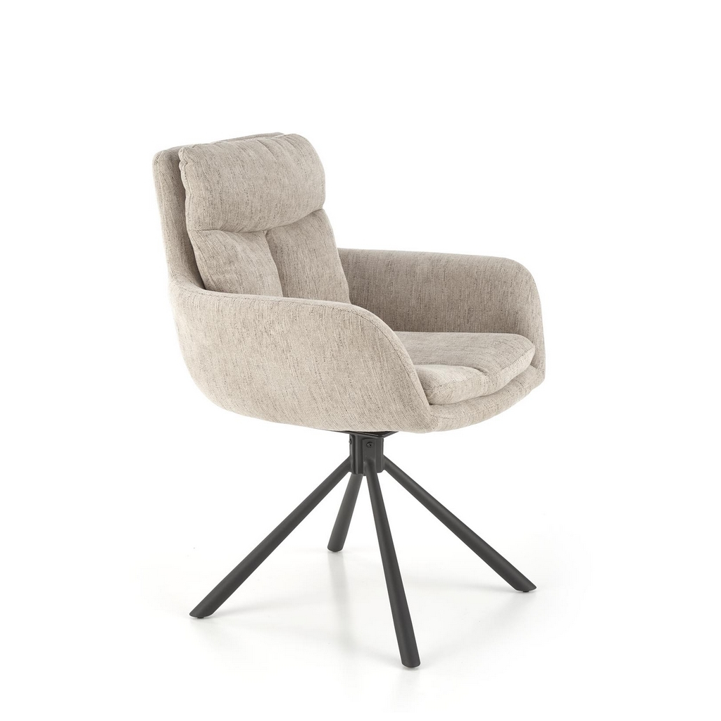 Materialul din stofă folosit pentru șezut asigură o senzație plăcută la atingere, iar picioarele metalice îi conferă stabilitate și rezistență suplimentară. Cu o capacitate portantă de până la 120 kg, scaunul garantează o utilizare durabilă.