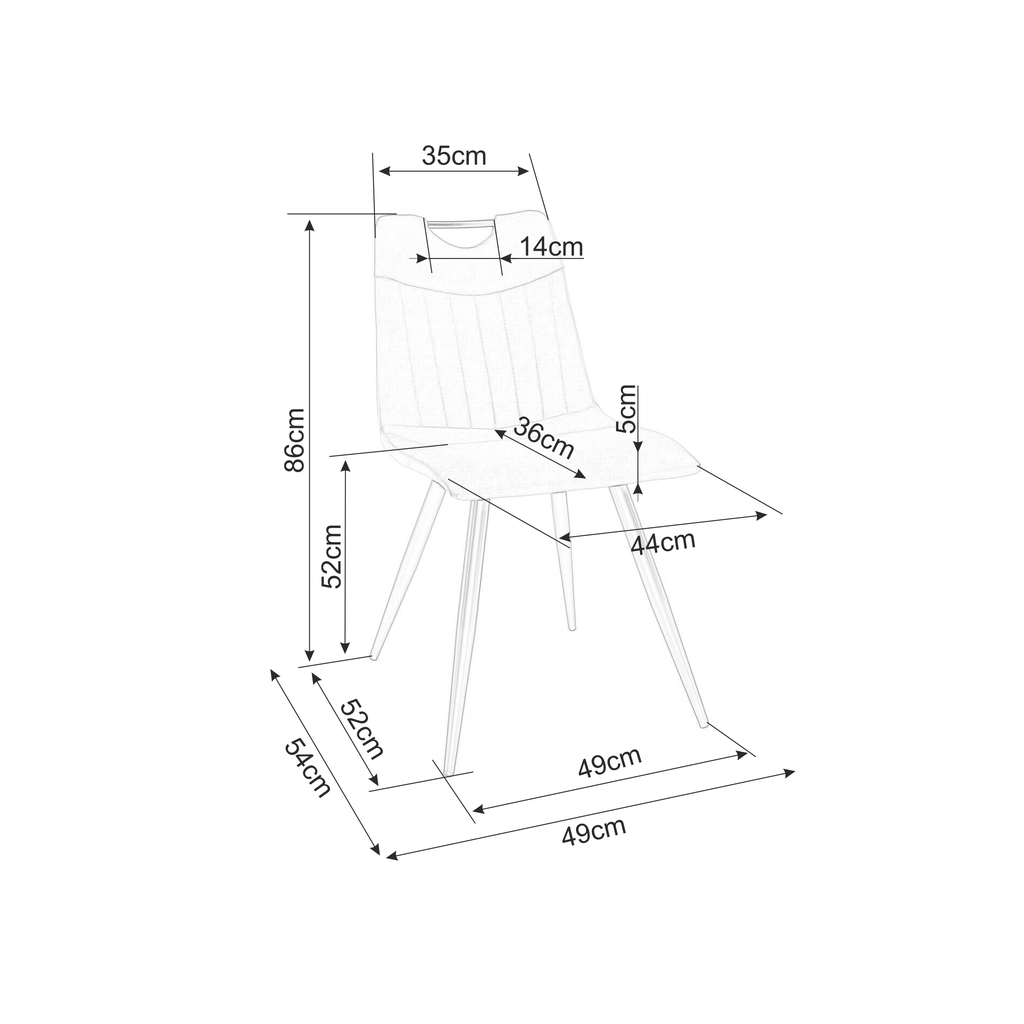 Scaunul de bucătărie Orfe Velvet este o alegere excelentă pentru cei care caută un echilibru ideal între confort și design modern. Cu dimensiuni bine proporționate, acest scaun poate fi integrat cu ușurință în orice bucătărie sau spațiu de dining. Spătarul suficient de înalt asigură susținere pentru o poziție confortabilă în timpul meselor.