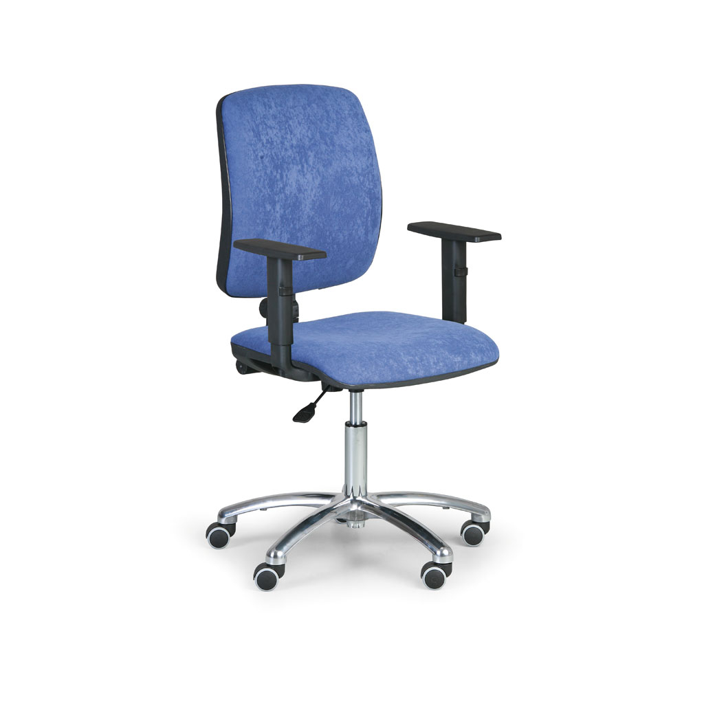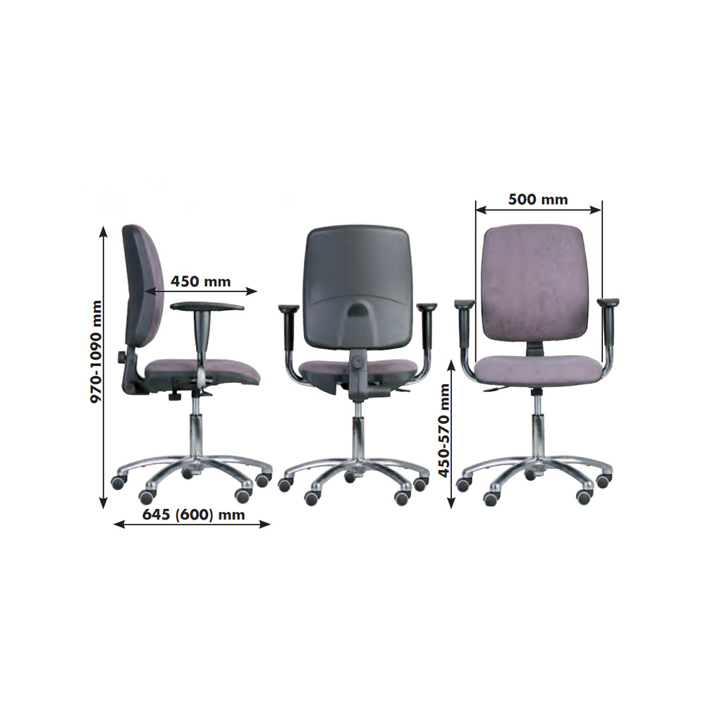 Datorită materialului din stofă, șezutul este respirabil și plăcut la atingere, susținut de o bază metalică robustă care garantează stabilitate și durabilitate. Mecanismul cu unghi fix oferă o poziție fermă, ideală pentru perioade lungi de muncă fără ajustări permanente.