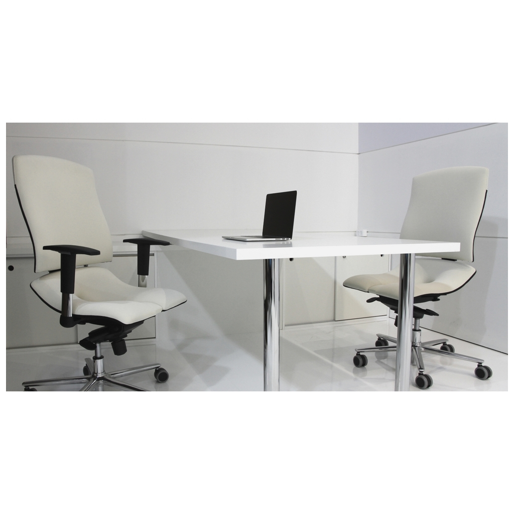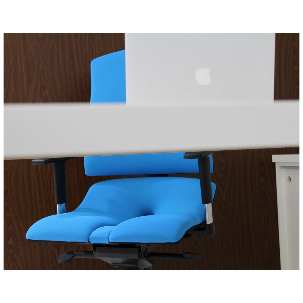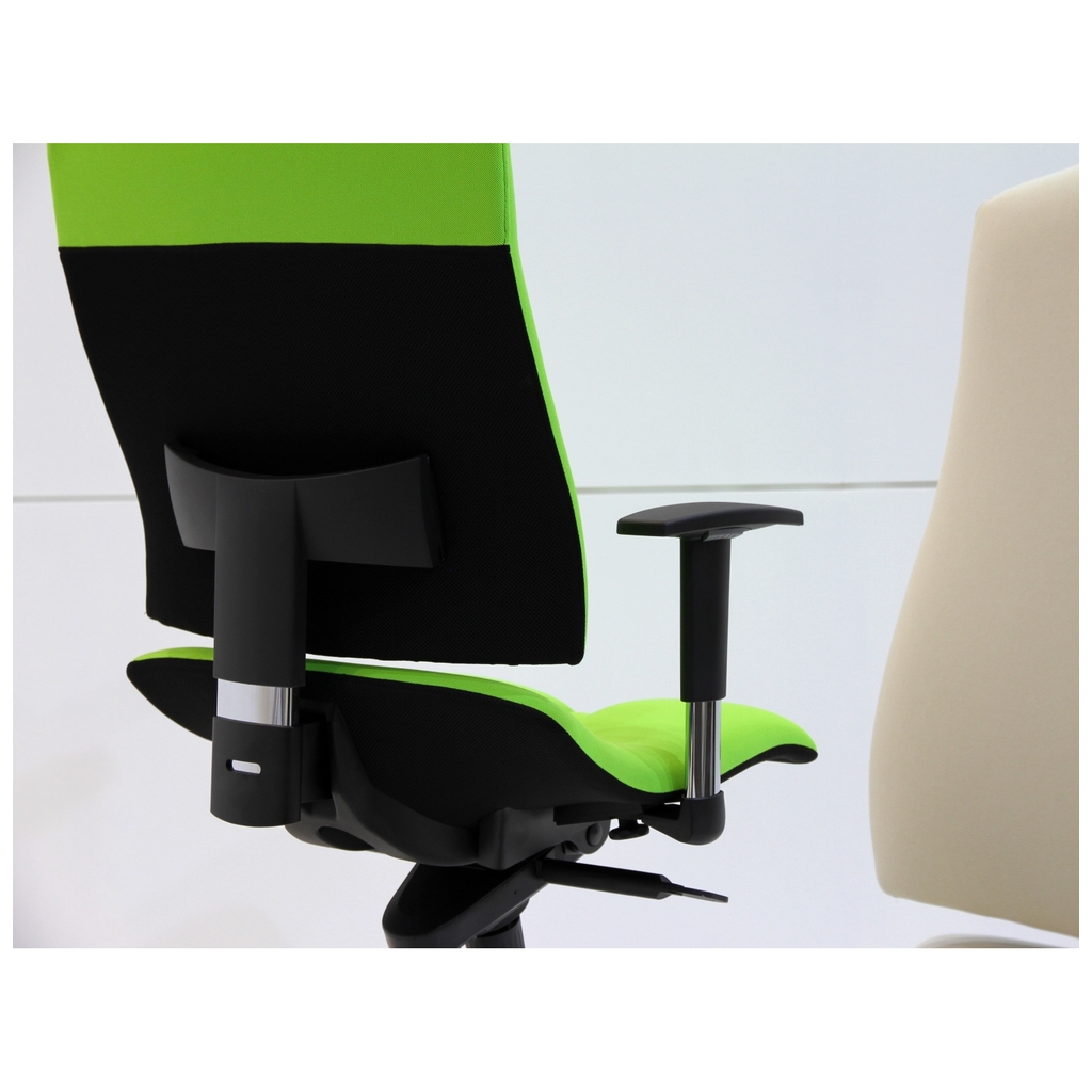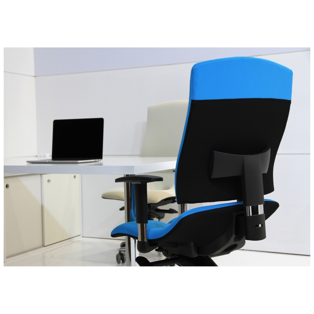 Brațele reglabile permit adaptarea la preferințele individuale, iar înălțimea totală a scaunului, inclusiv a spătarului și șezutului, poate fi modificată pentru un maxim de ergonomie. Cu o capacitate portantă de 130 kg și o grosime a șezutului de 4,5 cm, acest scaun este ideal pentru utilizare îndelungată, fiind recomandat pentru perioade peste 8 ore pe zi.