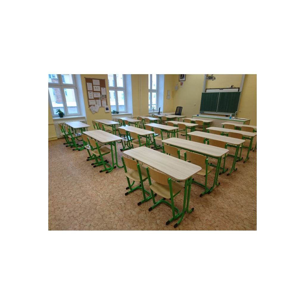 Deși nu dispune de sertar, designul său simplu ajută la menținerea unui spațiu de lucru ordonat și eficient. Este alegerea ideală pentru profesorii care doresc un mobilier funcțional, durabil și practic în sala de clasă.
