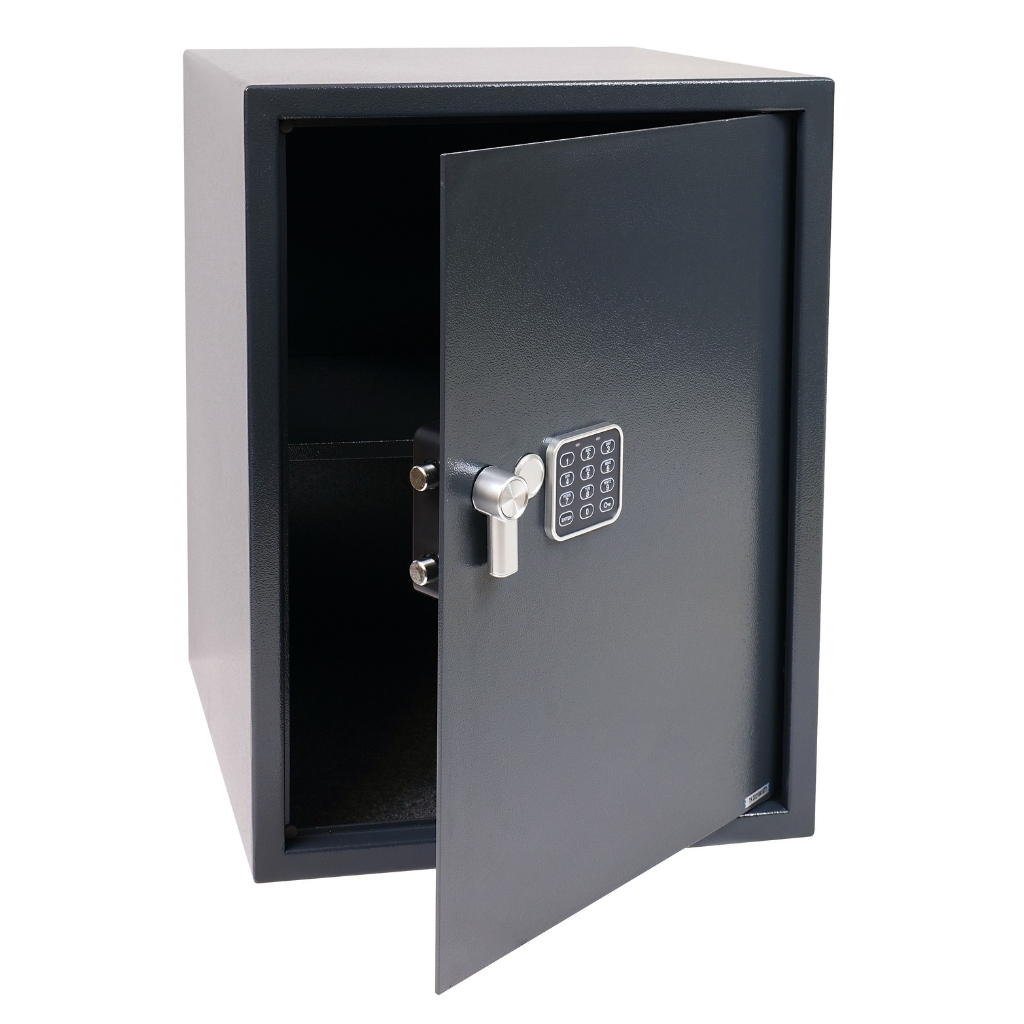 Realizat din metal rezistent, cu o grosime de 4 mm în cadru și 2 mm pe ușă, seiful oferă o protecție robustă, asigurându-ți liniștea că bunurile tale sunt în siguranță. Sistemul de închidere electronică facilitează accesul rapid și sigur, eliminând necesitatea cheilor tradiționale care pot fi pierdute.