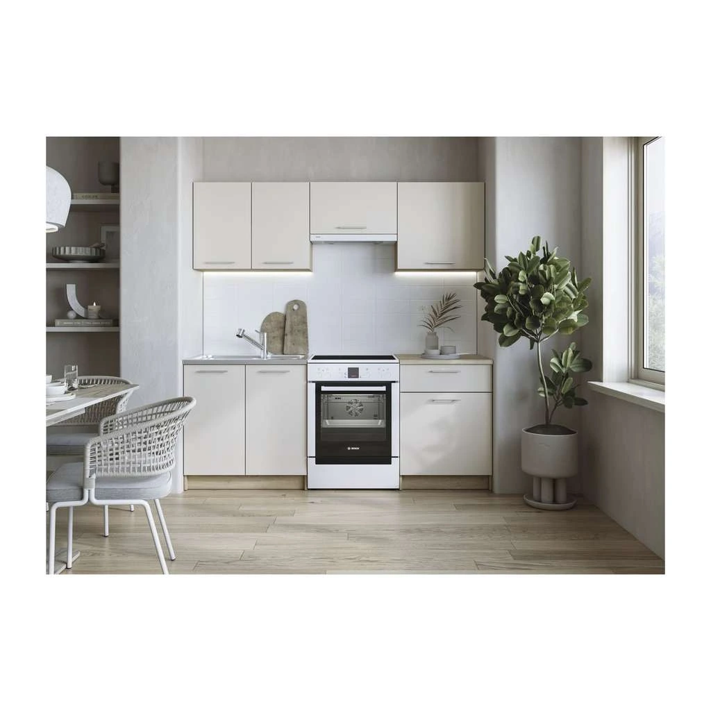 Setul bucătărie Maria 200 aduce un spațiu practic și funcțional pentru activitățile zilnice din bucătărie. Cu o lungime de 200 cm, oferă o suprafață de lucru generoasă și spațiu suficient pentru depozitarea tuturor ustensilelor și accesoriilor necesare. Designul său modern, bazat pe lemn natural, combină eficiența cu estetica plăcută.