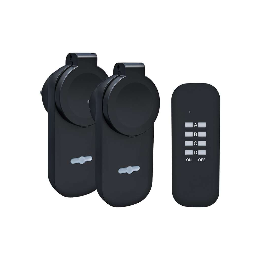 Set DY12 - 2x priză cu telecomandă + întrerupător, learning code, negru