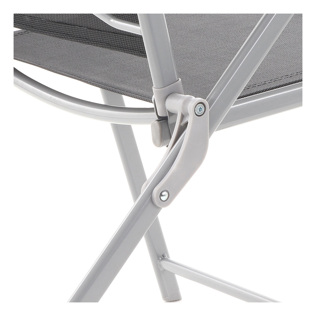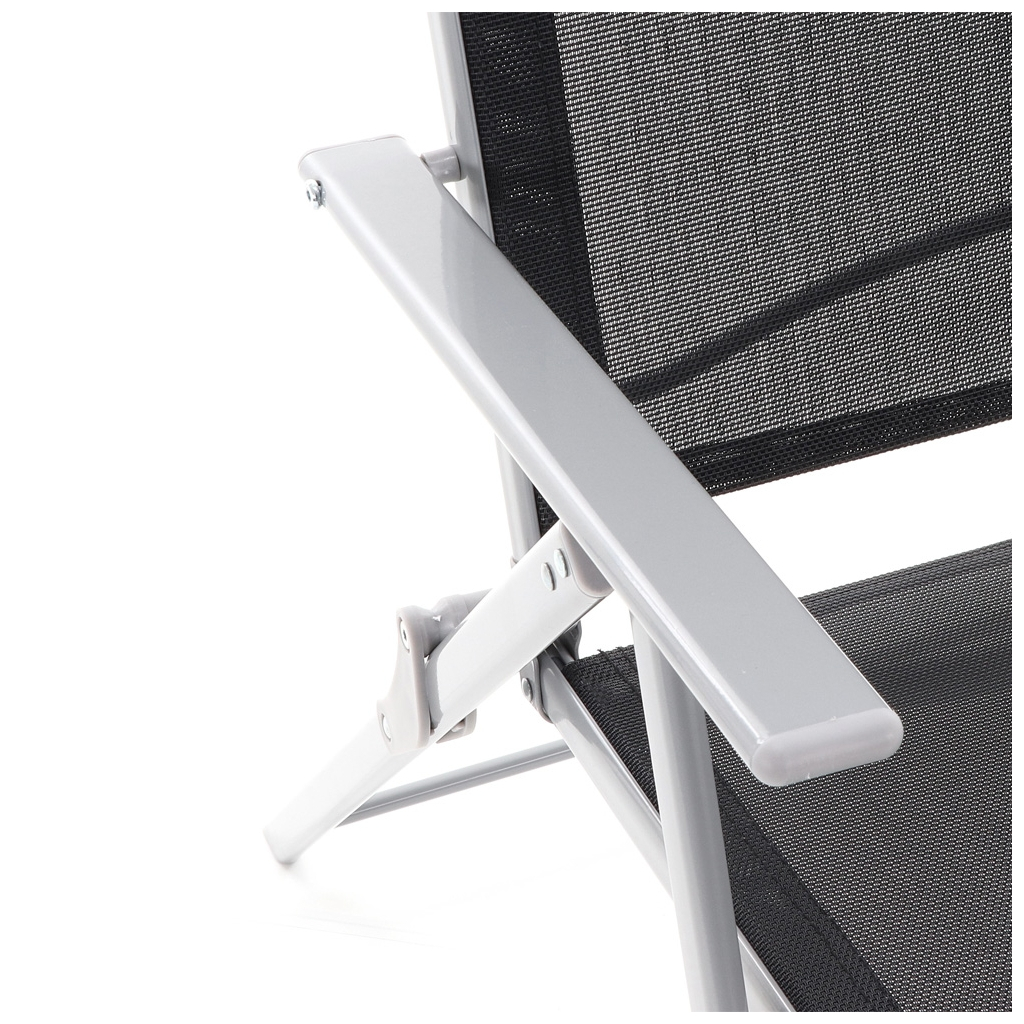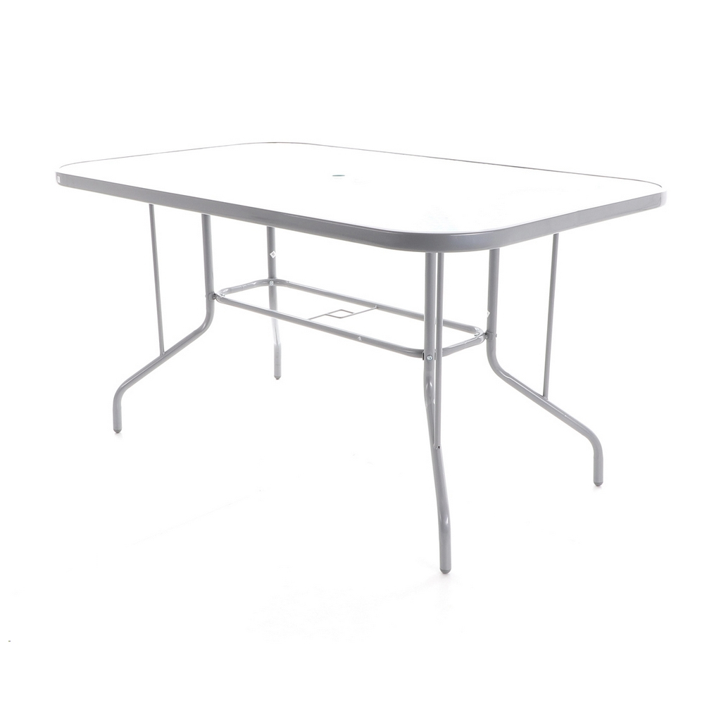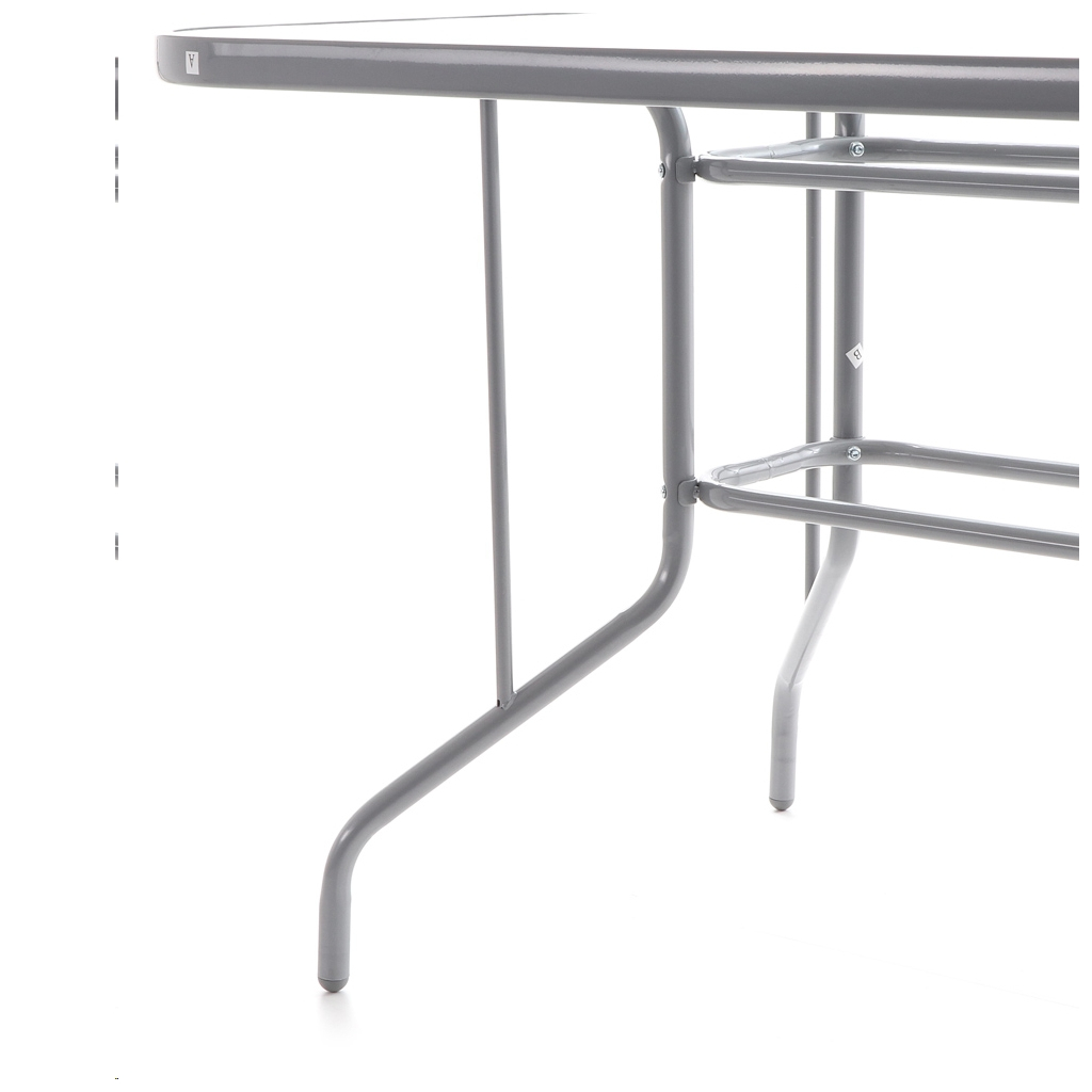 Tapițeria din plasă face ca scaunele să fie confortabile chiar și pe timpul verii, oferind o ventilație excelentă, iar structura metalică și blatul de sticlă garantează stabilitate și rezistență în timp. Masa are o dimensiune generoasă pentru a acomoda toate cele 6 locuri confortabil.