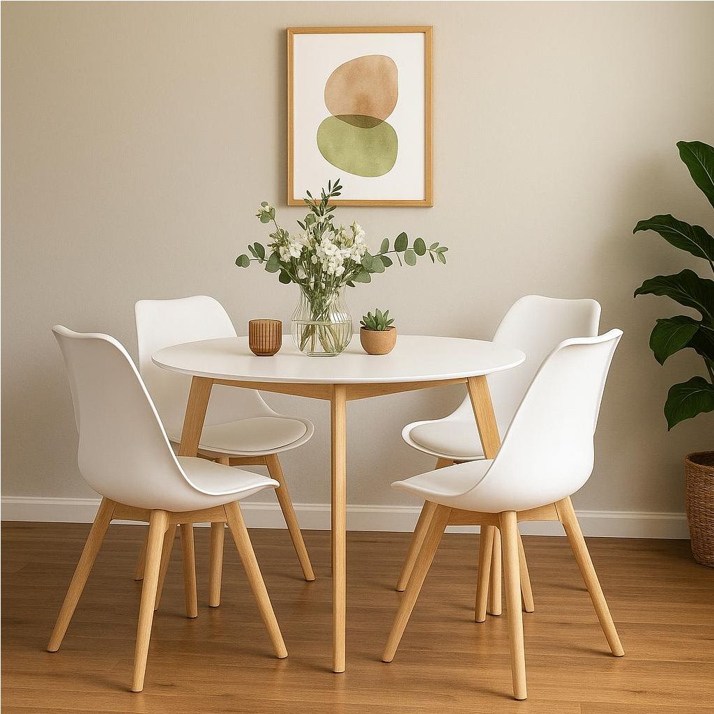 Setul masă și scaune Bizerte 4+1 aduce un aer modern și minimalist în spațiul dumneavoastră de luat masa, combinând designul simplu cu funcționalitatea robustă. Masa rotundă cu un diametru de 105 cm oferă un spațiu confortabil pentru până la patru persoane, ideal pentru cine în familie sau întâlniri cu prietenii.