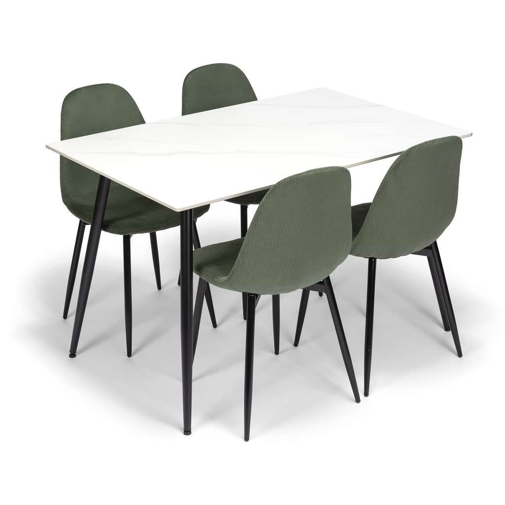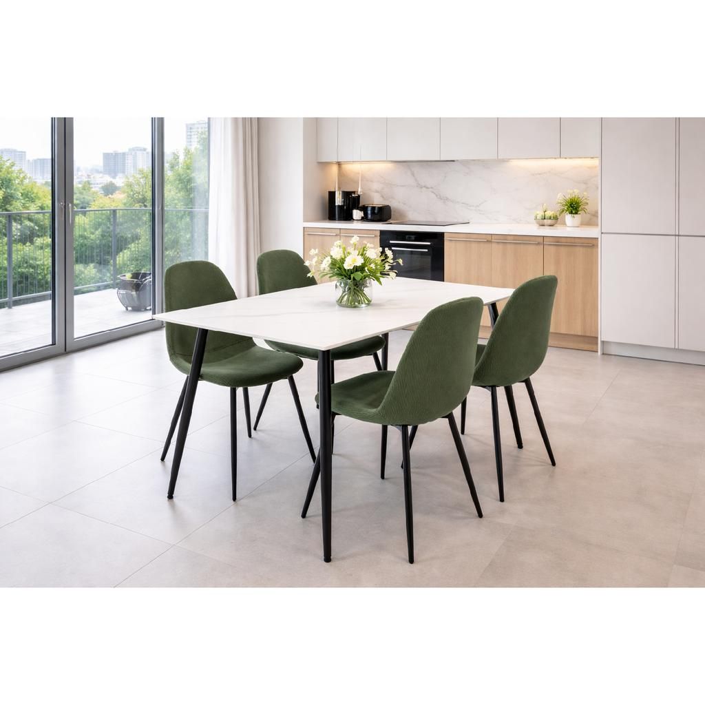 Setul Osidda 4+1 este o alegere excelentă pentru cei care caută un mobilier care combină design modern cu funcționalitate durabilă. Blatul mesei din ceramică oferă o suprafață elegantă, rezistentă și ușor de întreținut, în timp ce picioarele metalice asigură stabilitate ridicată și durabilitate în timp.
