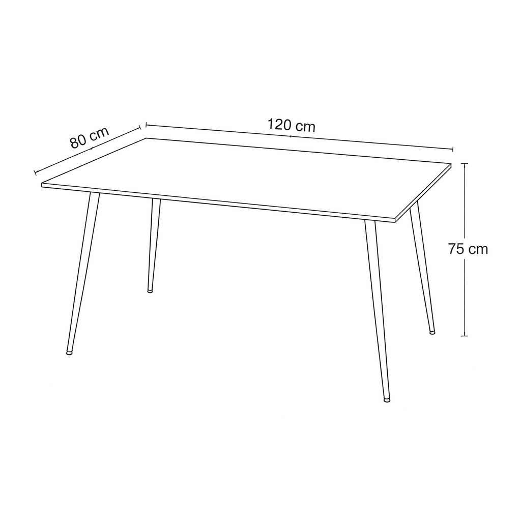 - Dimensiuni masă: 120 cm lungime, 80 cm adâncime, 76 cm înălțime
