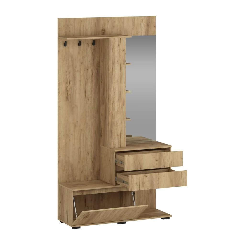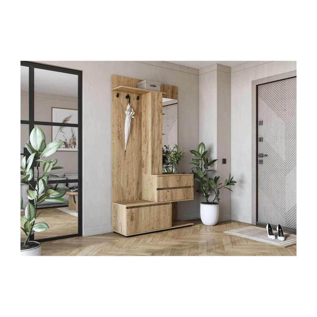 Armata se remarcă prin compartimentarea inteligentă, ce permite depozitări diverse, iar finisajul lemnului vă aduce o notă naturală și primitoare. Acest set este o alegere excelentă pentru oricine dorește să îmbine utilitatea cu un design contemporan și să obțină un hol ordonat și mereu pregătit pentru vizitatori.
