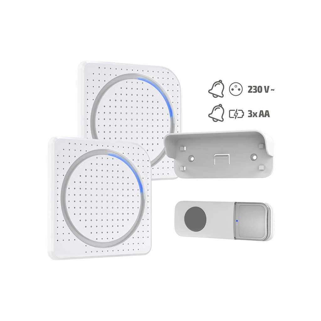 Sonerie wireless pe baterii / la priză 1L67, 200m, learning code - 2buc, alb