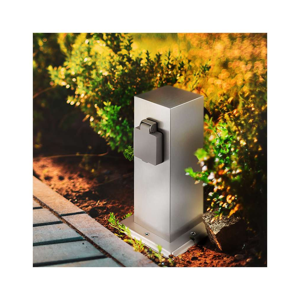 Stâlp de grădină 230V 2 prize – PG11, argint