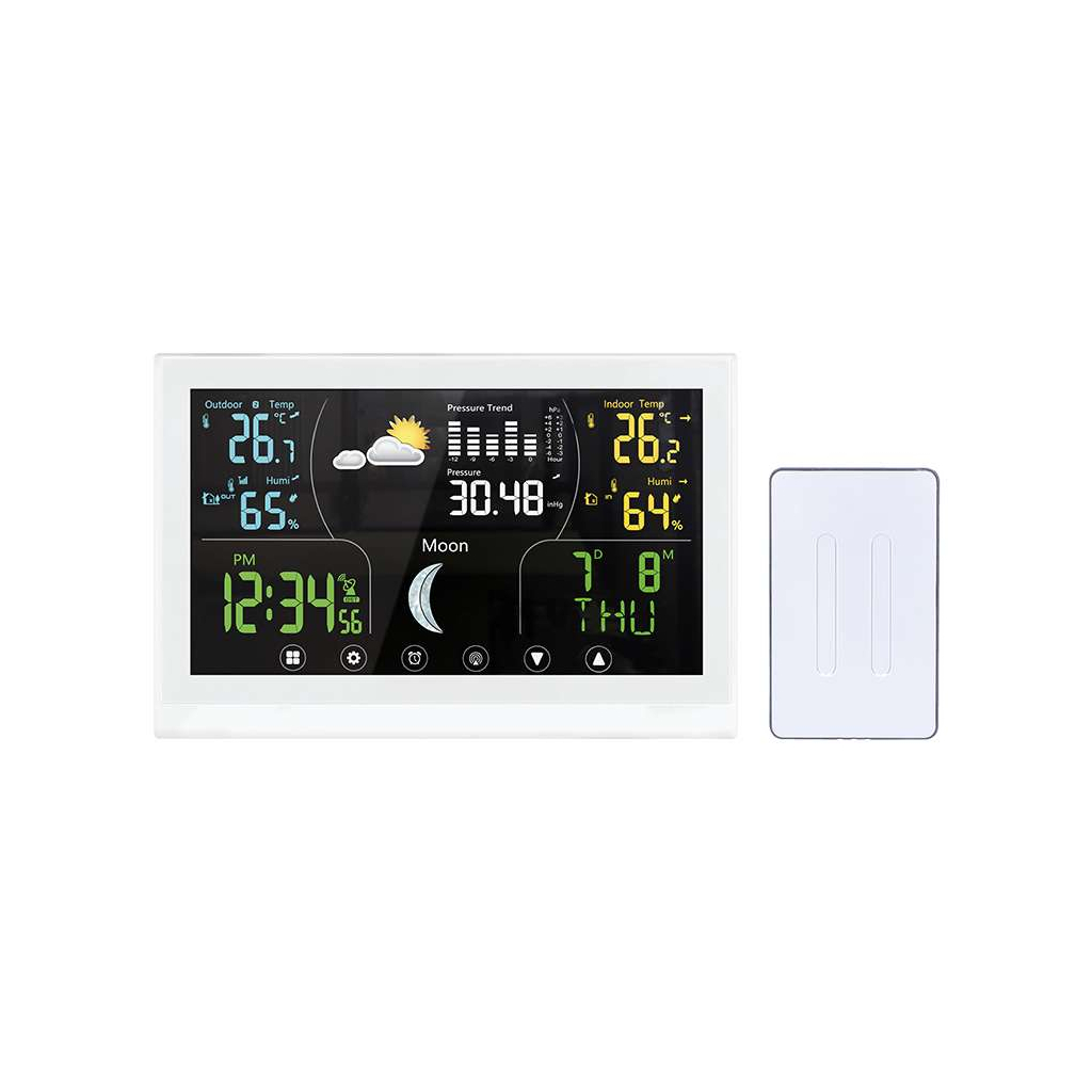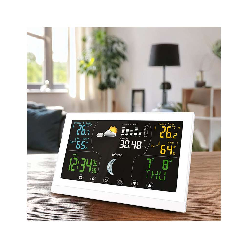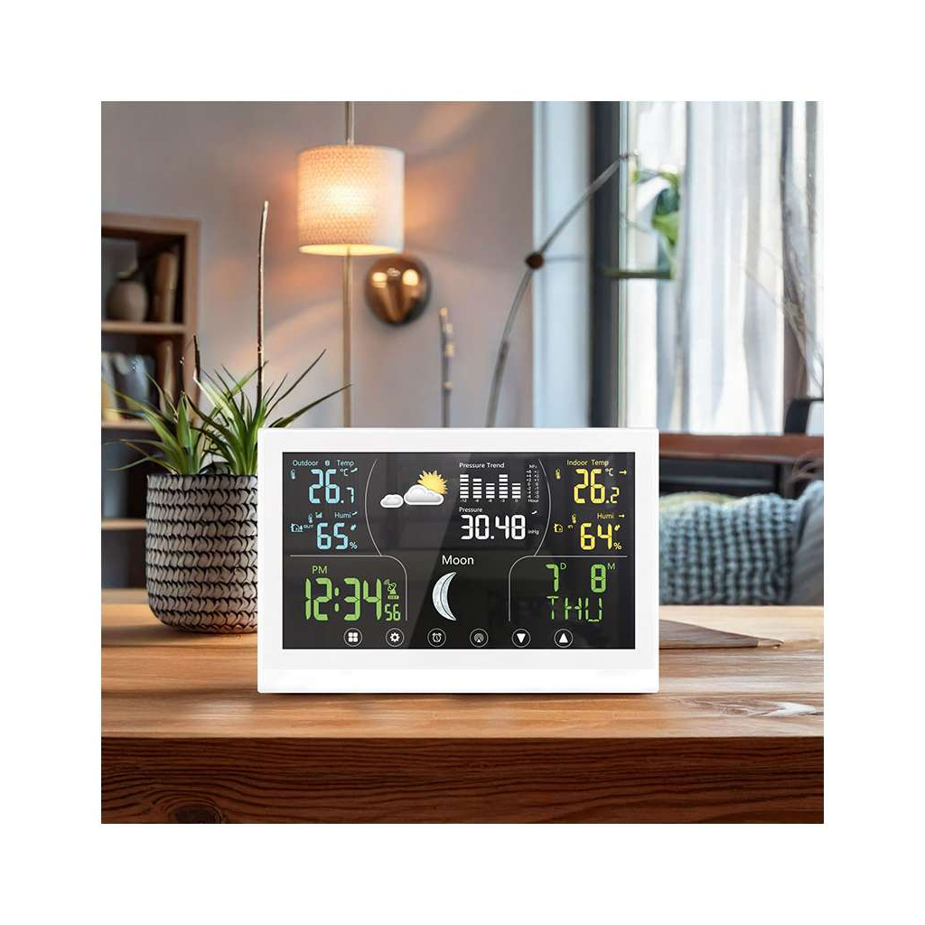Stația meteo TE110 oferă o monitorizare precisă și completă a condițiilor atmosferice atât în interior cât și în exterior, fiind un dispozitiv esențial pentru cei care doresc să-și gestioneze mai bine confortul și planificările zilnice. Cu un afișaj color clar și touchscreen, informațiile despre temperatură, umiditate și presiune atmosferică sunt ușor de citit și de accesat.
